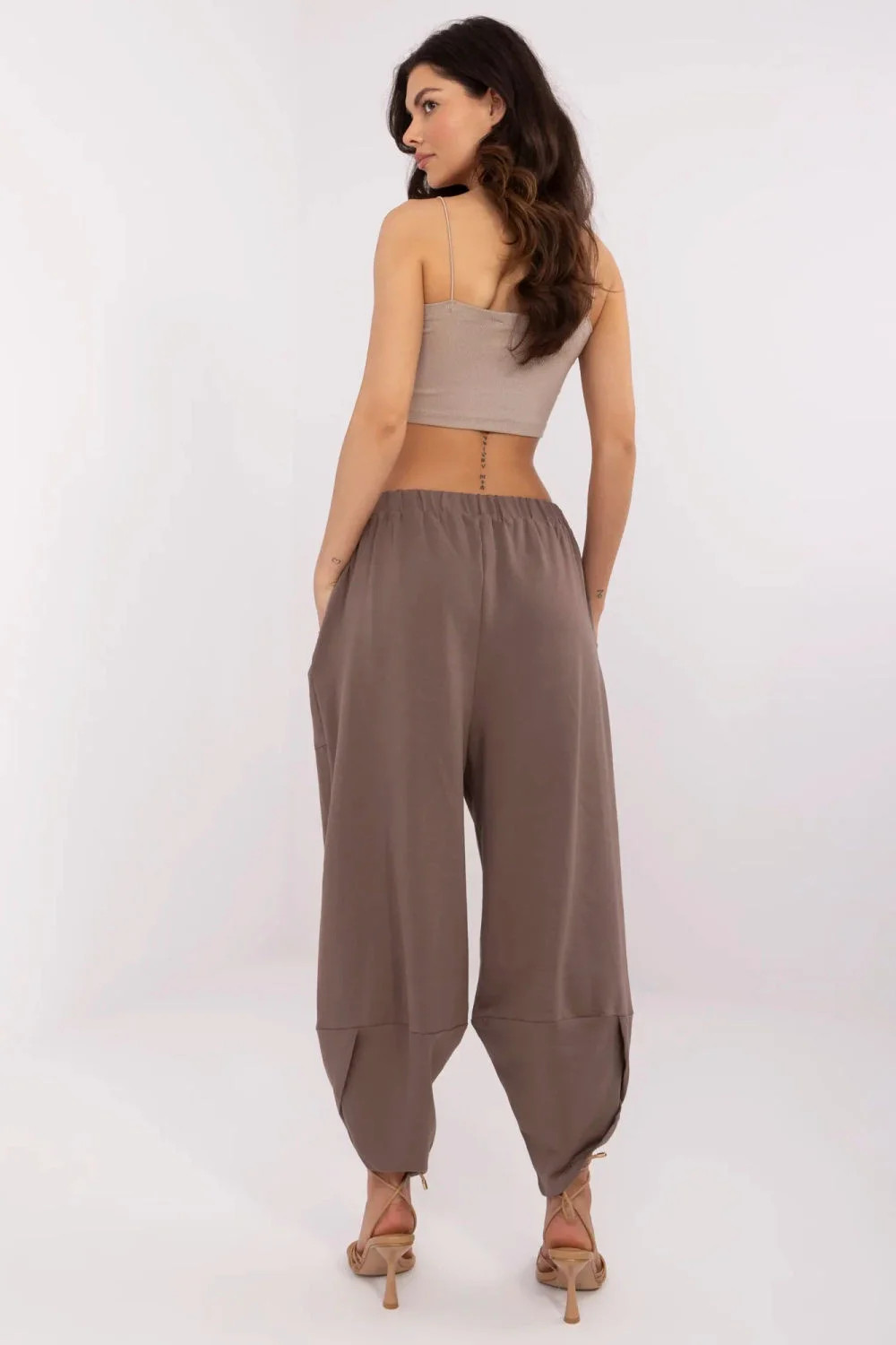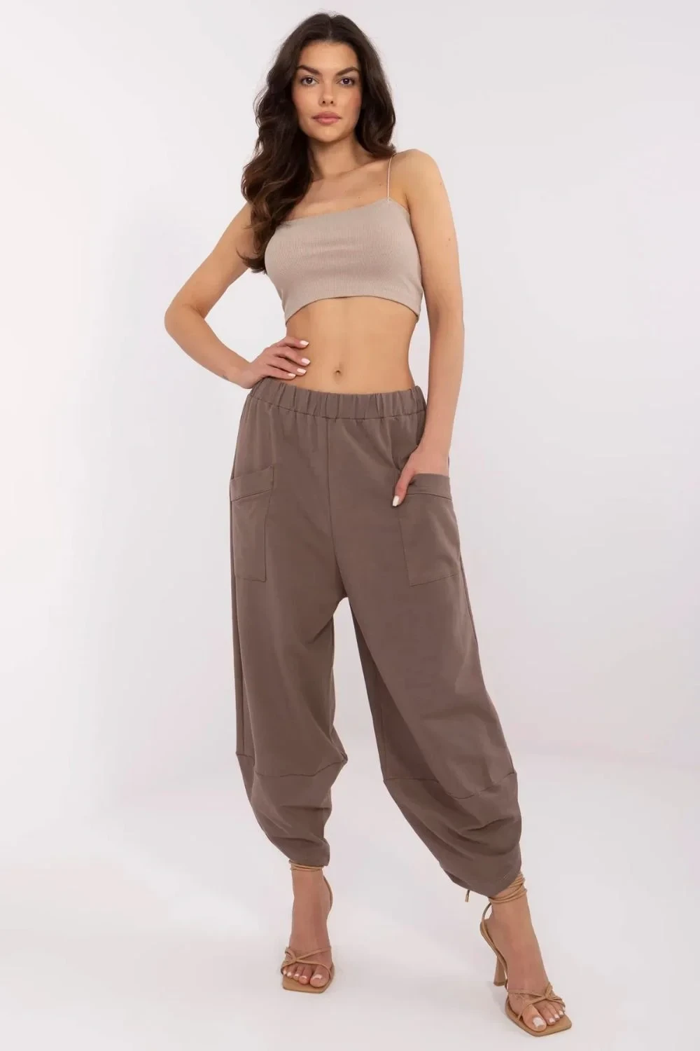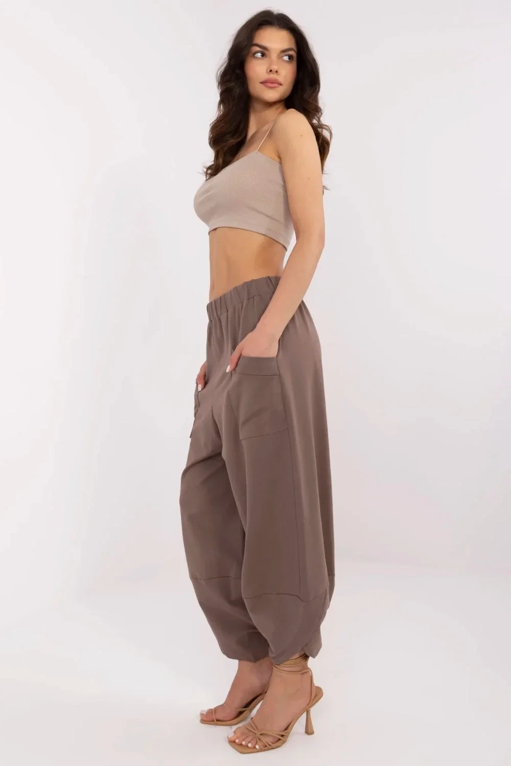 Dámské teplákové kalhoty typu aládinky v casual stylu, ideální na každý den. Vyrobené z měkké a elastické směsi bavlny a elastanu, poskytují pohodlí a volnost pohybu. Vysoký pas s všitou gumou zajistí pohodlné přizpůsobení se postavě. Hladký materiál a volný střih jim dodávají lehkost, a stylové rozříznutí na nohavicích přidává originální charakter. Praktické, zasunuté kapsy na bocích zvyšují funkčnost. Skvělá volba pro ženy, které ocení pohodlí a stylový vzhled!