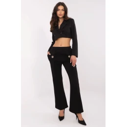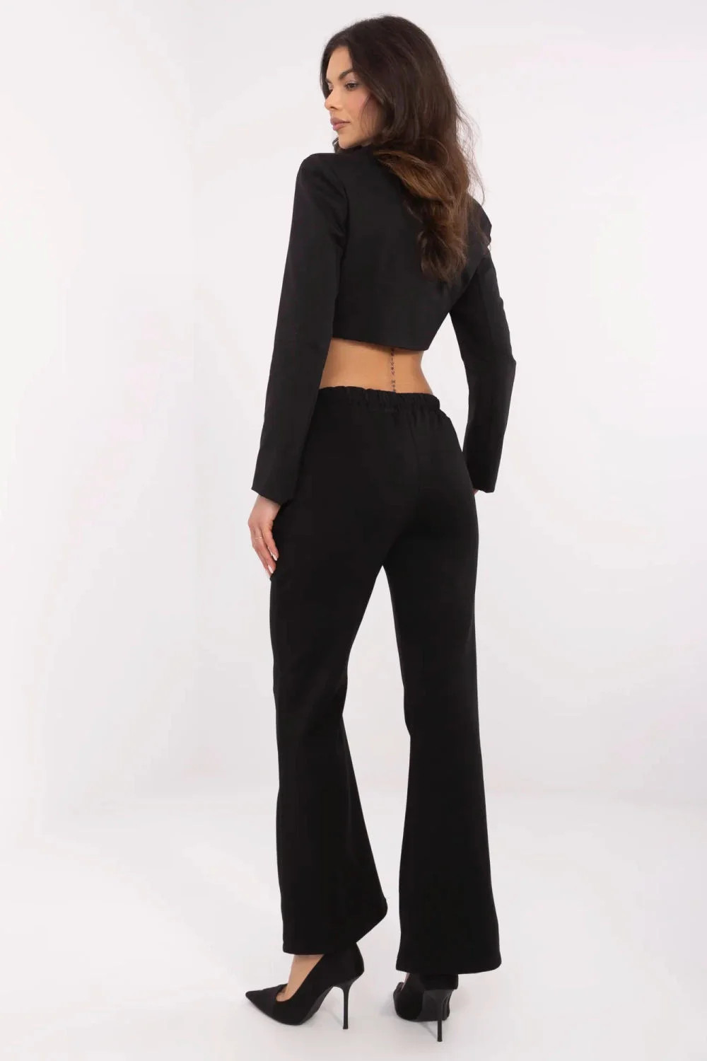 Tyto stylové kalhoty s dresovými nohavicemi spojují pohodlí a moderní střih zvonových nohavic, vytvářejí ideální řešení pro každodenní nošení i do práce. Vyrobené z vysoce kvalitní směsi viskózy, elastanu a polyesteru, zajišťují jemnost, pružnost a skvělé přizpůsobení postavě. Vysoký pas a elastický pás zaručují pohodlí a zdůrazňují pas, zatímco široké nohavice dodávají siluetě elegantní, prodlužující efekt. Boční kapsy zvyšují funkčnost kalhot, činí je praktickou volbou na každou příležitost. Hladký vzor a minimalistický design doplňují další, odpínatelné brože, které umožňují personalizaci outfitu. Tyto kalhoty jsou kombinací moderního stylu a pohodlí, ideální pro ženy, které si cení eleganci v každodenním podání.