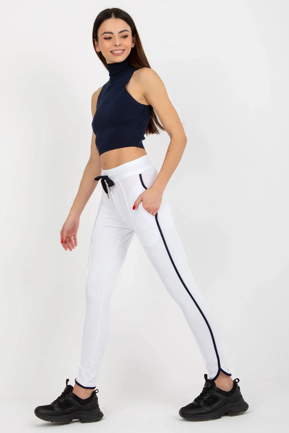 Casual sportovní tepláky jsou pohodlnou a stylovou volbou na každý den a fyzickou aktivitu. Vyrobené z měkké směsi bavlny, polyesteru a elastanu poskytují pohodlí nošení, dobrou ventilaci a pružnost. Model s vysokým pasem a šňůrkou v pase skvěle padne k postavě, zdůrazňuje pas. Hladká látka je doplněna kontrastními pruhy po stranách, které opticky prodlužují nohy a dodávají sportovní charakter. Nohavice jsou zakončeny moderním rozparkem dole, což dává kalhotám lehkost a moderní vzhled. Vložené boční kapsy zvyšují funkčnost. Ideální na každý den, procházku nebo trénink.