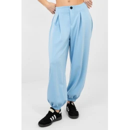 Volné tepláky typu joggery jsou kombinací pohodlí a stylového vzhledu, ideální na každý den a do pracovního prostředí s uvolněným stylem. Vyrobené z měkké a elastické směsi viskózy s přídavkem elastanu zajistí pohodlí a volnost pohybu. Model s hladkým vzorem a ozdobnými záložkami vpředu dodává kalhotám elegantní charakter. Elastická guma vpředu zajišťuje dobré přizpůsobení postavě. Nohavice s manžetami zdůrazňují střih joggery a zajistí pohodlí při nošení. Kalhoty nemají zapínání, boční kapsy zvyšují jejich funkčnost. Celkový dojem dotváří ozdobné knoflíčky, které jsou stylovým detail. Ideální ke každodenním outfitům s mikinou, svetrem nebo košilí.