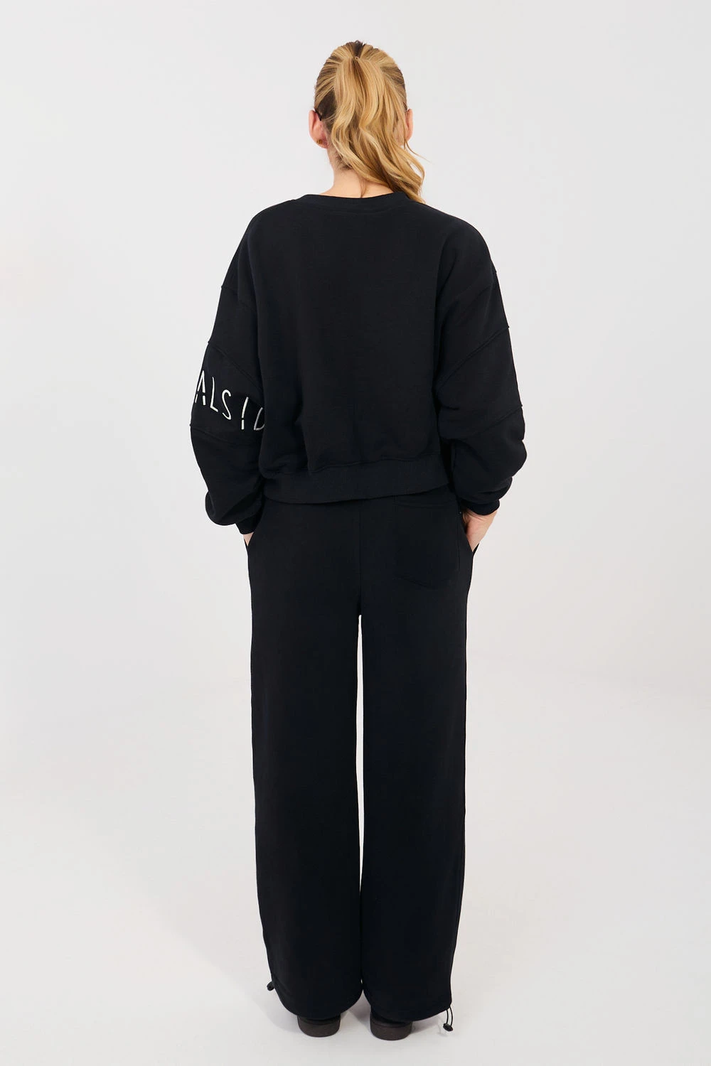 Kalhoty s přímými nohavicemi jsou pohodlným a stylovým návrhem v casualovém provedení. Skvěle se hodí na každý den, ať už při relaxaci, procházce nebo ve městském stylu. Přímé nohavice jim dodávají moderní a minimalistický charakter a zajišťují volnost pohybu. Model je vyroben z vysoké kvality směsi bavlny a polyesteru, co zaručuje pohodlí nošení, měkkost a odolnost materiálu. Vysoký pas krásně zdůrazňuje pas a zajišťuje pohodlné přizpůsobení postavě. V pasu je praktické šněrování, které umožňuje individuální úpravu. Kalhoty mají boční kapsy na zip, které zvyšují funkčnost modelu. Hladký vzor zdůrazňuje jejich univerzální styl, zatímco ozdobný vyšívání na levé nohavici představuje decentní, moderní akcent, který celku dodává výjimečný charakter.