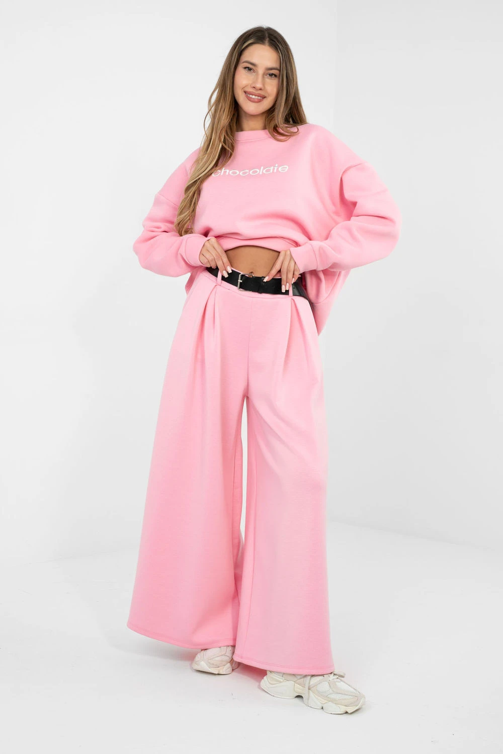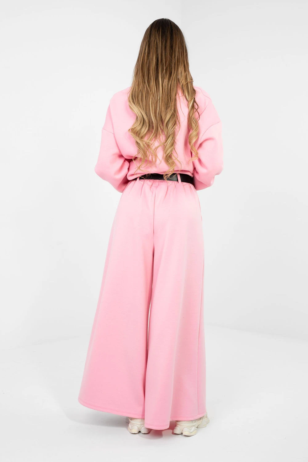 Elegantní dresové kalhoty typu palazzo jsou kombinací pohodlí a elegance v moderním provedení. Vyrobena z vysoce kvalitní směsi viskózy, polyesteru a elastanu, oslní tkaninou typu měkké máslo, která je mimořádně měkká, jemná a velmi příjemná na dotek. Materiál se krásně přizpůsobuje postavě, poskytující pohodlí po celý den. Model s vysokým pasem má v pase vsazený gumový pásek, který zajistí ideální přizpůsobení bez pocitu stlačení. K tomu je připojený pásek se zapínáním, který zdůrazňuje pas a dodává celku elegantní charakter. Chybějící klasické zapínání zvyšuje pohodlí používání. Široké nohavice ve stylu palazzo dodávají postavě lehkost a volnost a ozdobné přehybky vpředu dodávají kalhotám rafinovaný akcent. Hladký vzor dělá model univerzálním a snadno stylizovatelným, skvěle se hodí jak na denní nošení, tak do práce. Boční kapsy zvyšují funkčnost, spojují praktičnost s elegantním stylem.