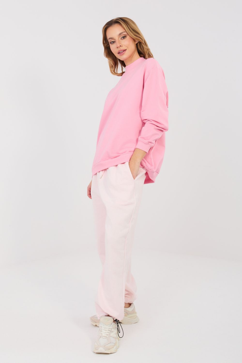 Pohodlné a stylové tepláky typu joggery jsou skvělou volbou na každý den. Skvěle zapadají do casualového stylu a budou skvělým doplňkem pro procházky, nákupy nebo relaxaci doma. Hladký vzor jim dodává univerzální charakter, díky čemuž se snadno sladí s tričkem, mikinou nebo sportovní bundou. Model s vysokým pasem krásně zdůrazní pas a zajistí pohodlné nošení. V pasu je praktické šňůrkování, které umožňuje ideální přizpůsobení postavě. Tepláky mají boční kapsy, které jsou funkční a pohodlné pro drobnosti. Nohavice jsou zakončeny regulací šířky dole, což umožňuje přizpůsobit jejich šířku vlastním preferencím a dodat stylizaci sportovnější nebo volnější charakter. Vyrobené z vysoké kvality bavlny, jsou měkké, prodyšné a příjemné na dotek. Jsou nezbytným kouskem v každé skříni, pohodlné, praktické a nadčasové.