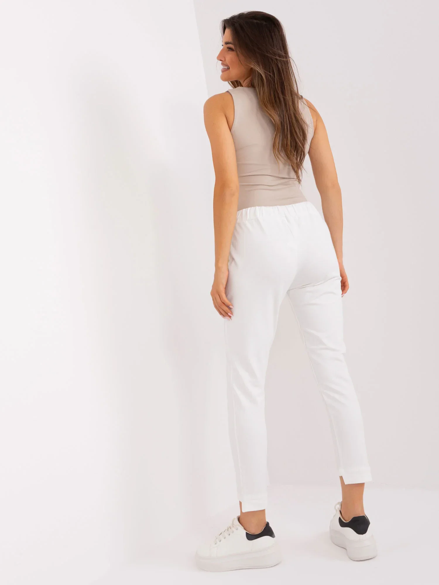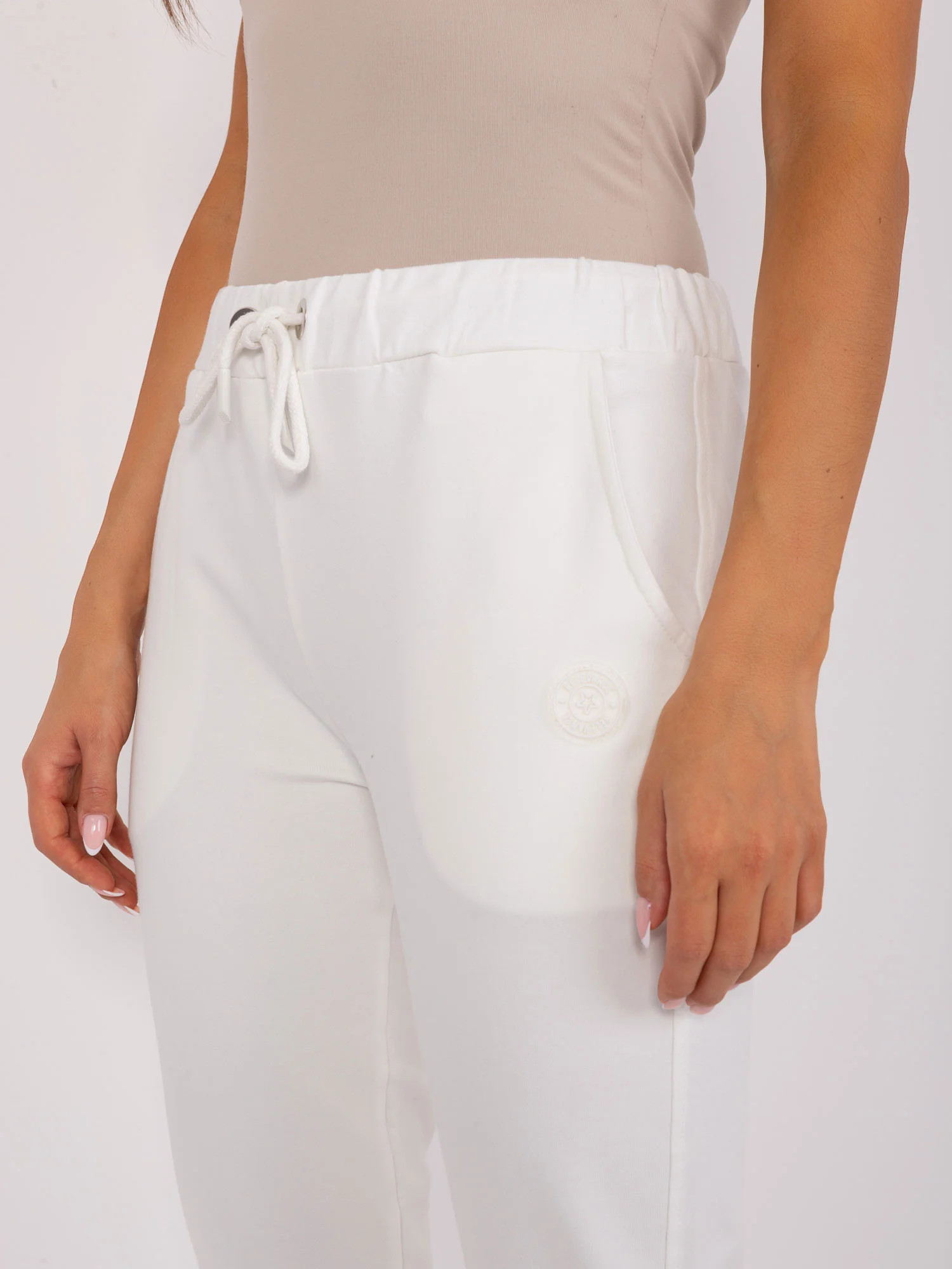 Tepláky v barvě ecru s nohavicemi a kapsami.