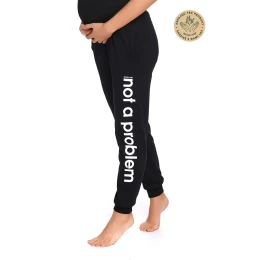 Kalhoty mají prodloužený střih pro těhotné ženy. Jemný vysoký stahovací lem usnadňuje pohodlné nošení kalhot. Lem při nošení netlačí a přizpůsobuje se rostoucímu bříšku. Kalhoty jsou ušité z velmi kvalitní bavlny.