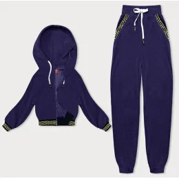 Teplákový žebrovaný komplet ve švestkové barvě s ozdobnými stahovacími lemy (AMG-345A)