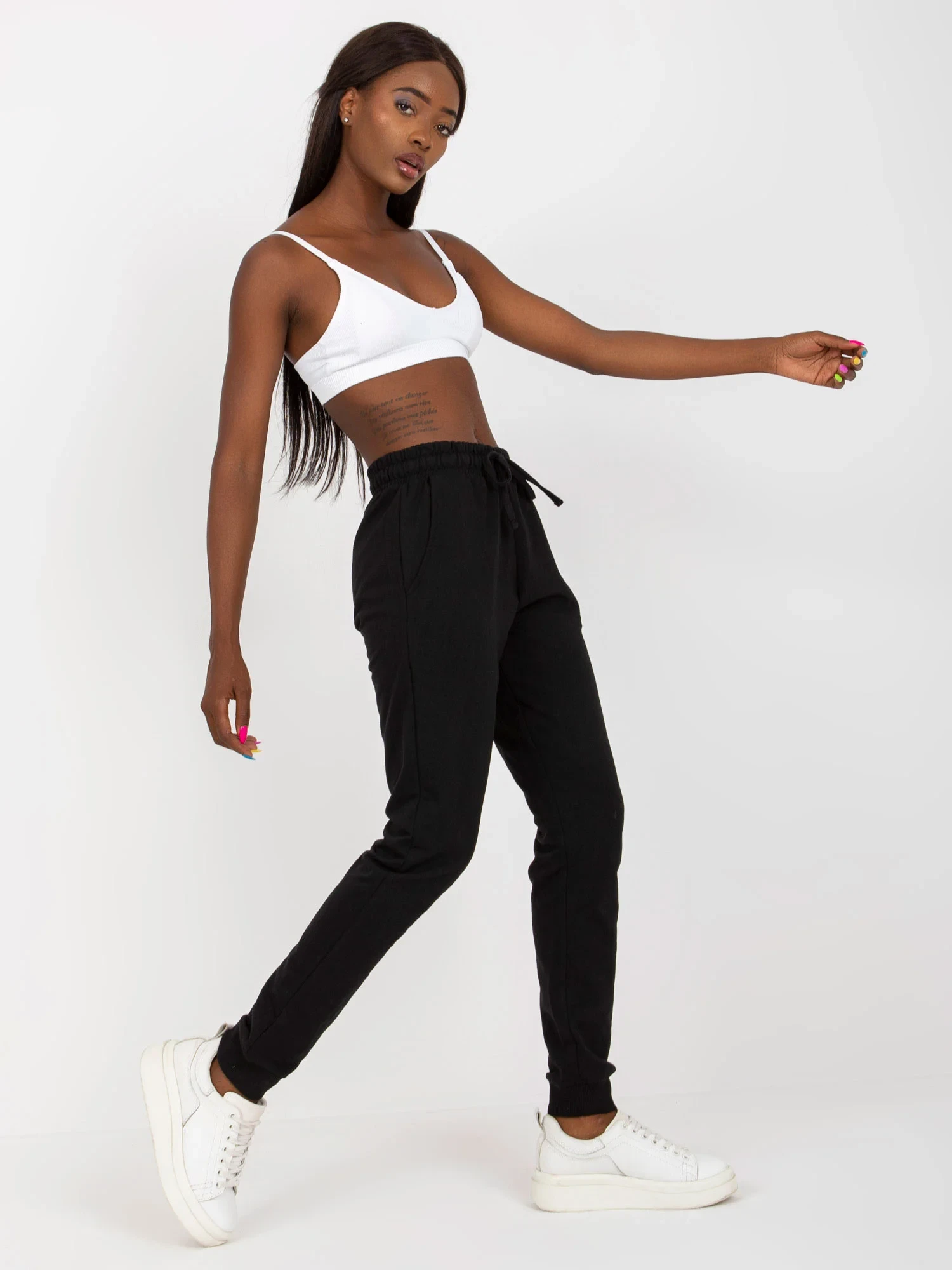 Černé základní tepláky s vysokým pasem .