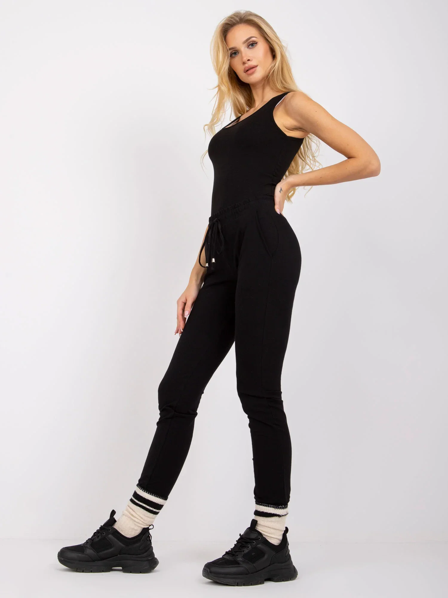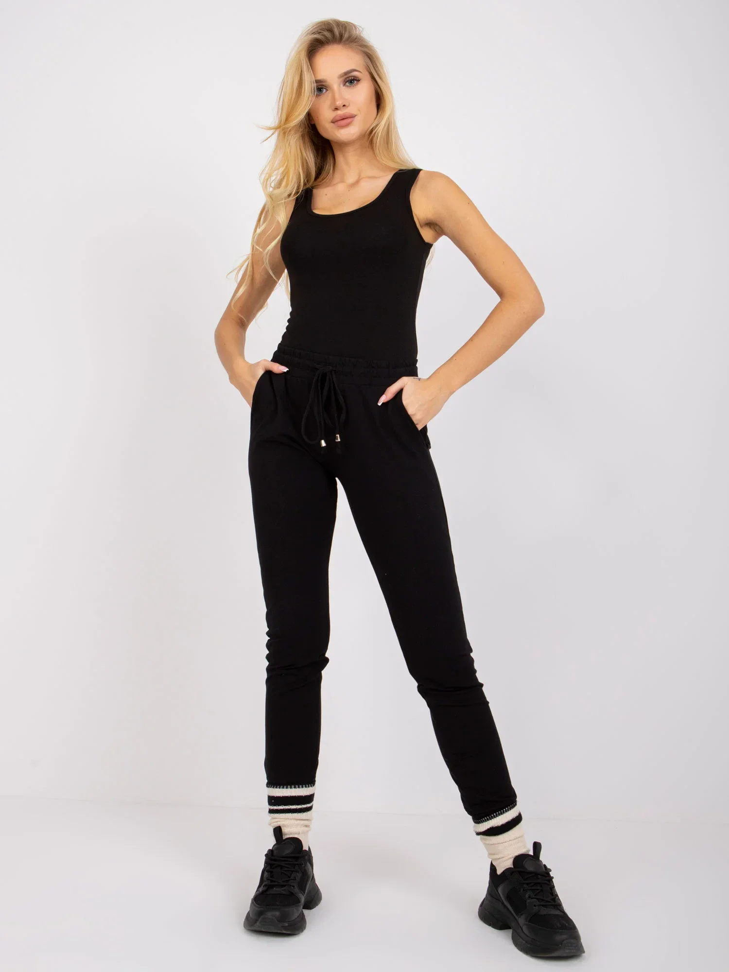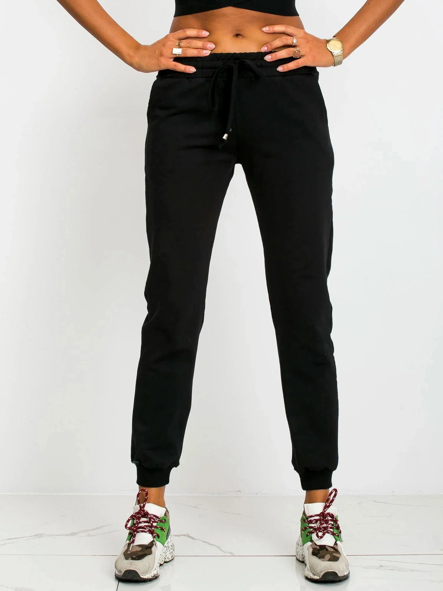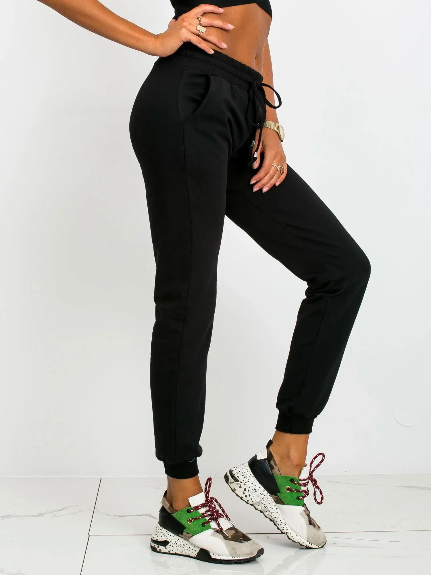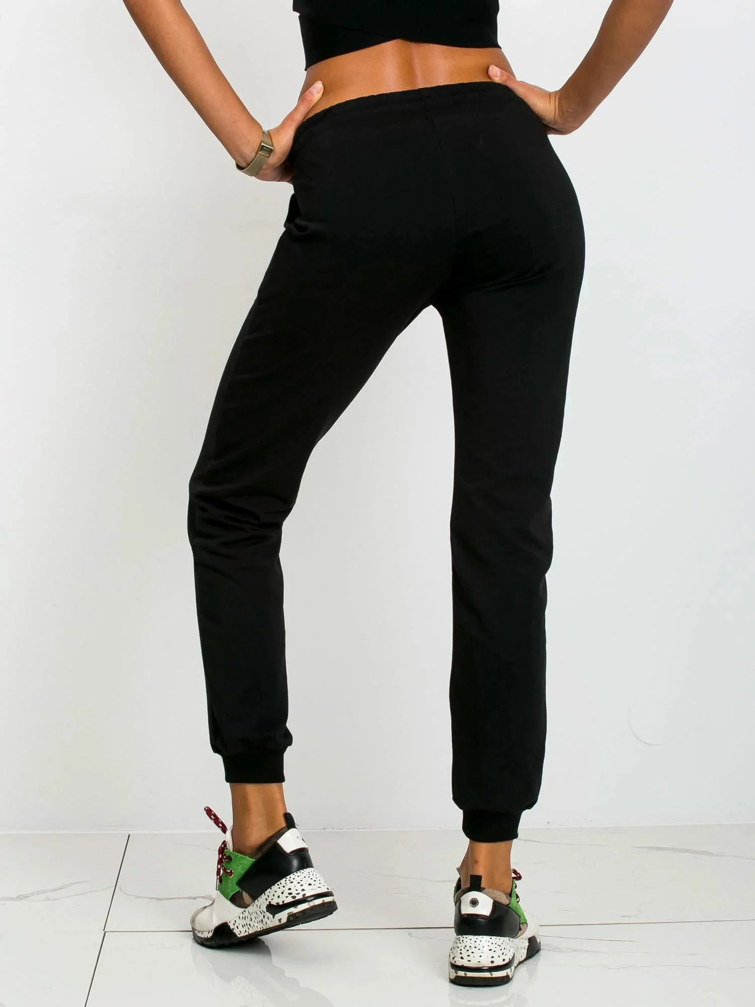 Základní černé teplákové kalhoty.
