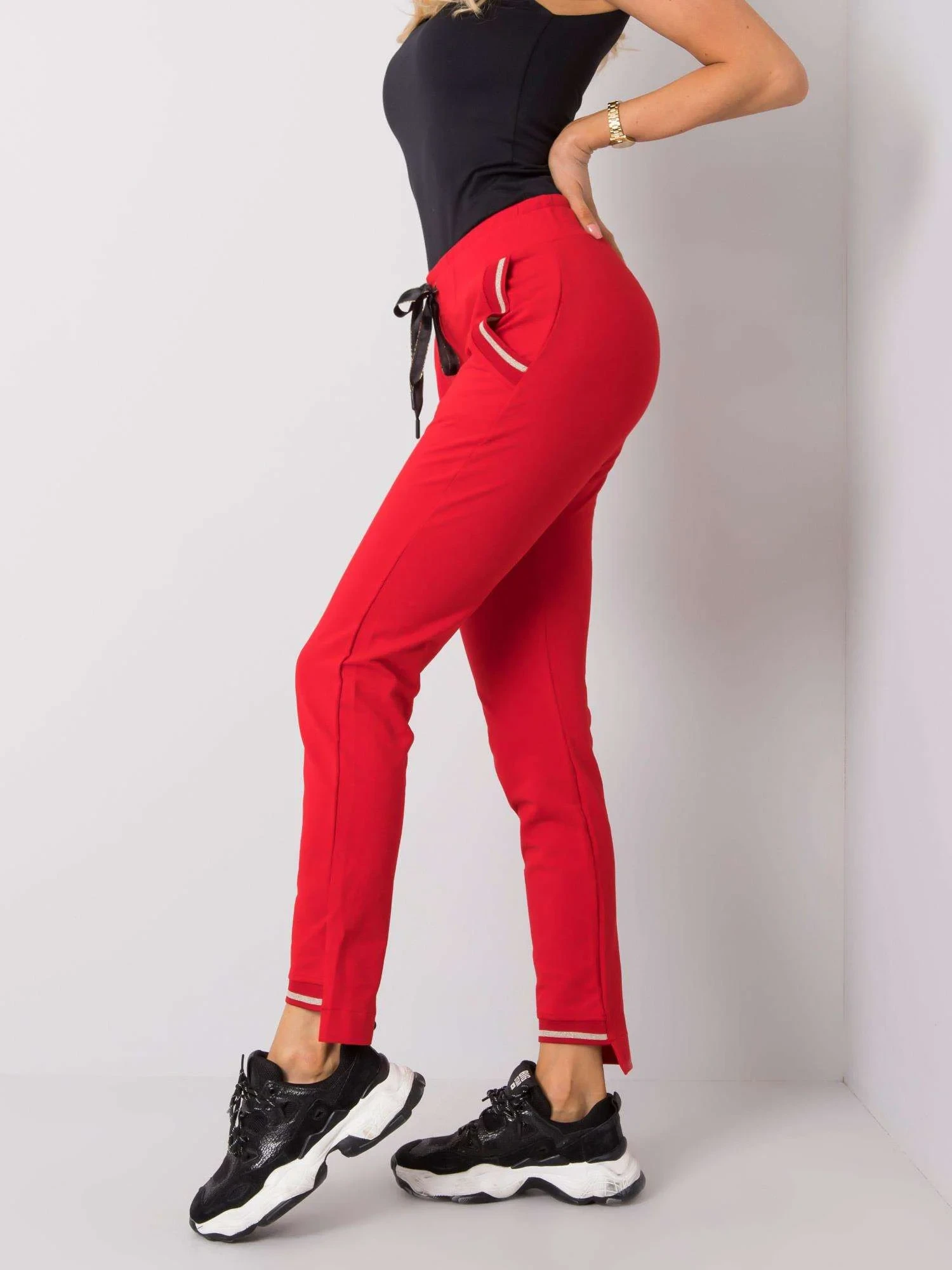 Červené dámské tepláky.