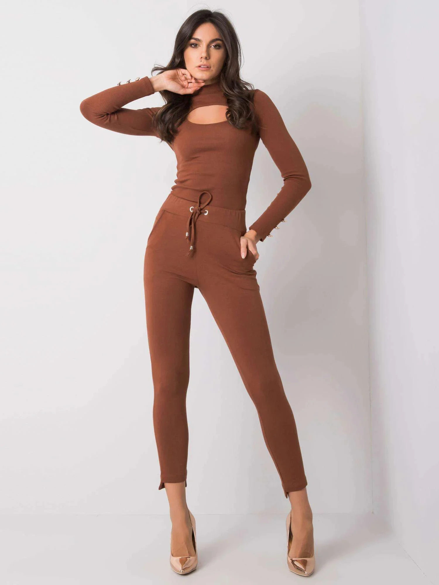 Hnědé základní tepláky.