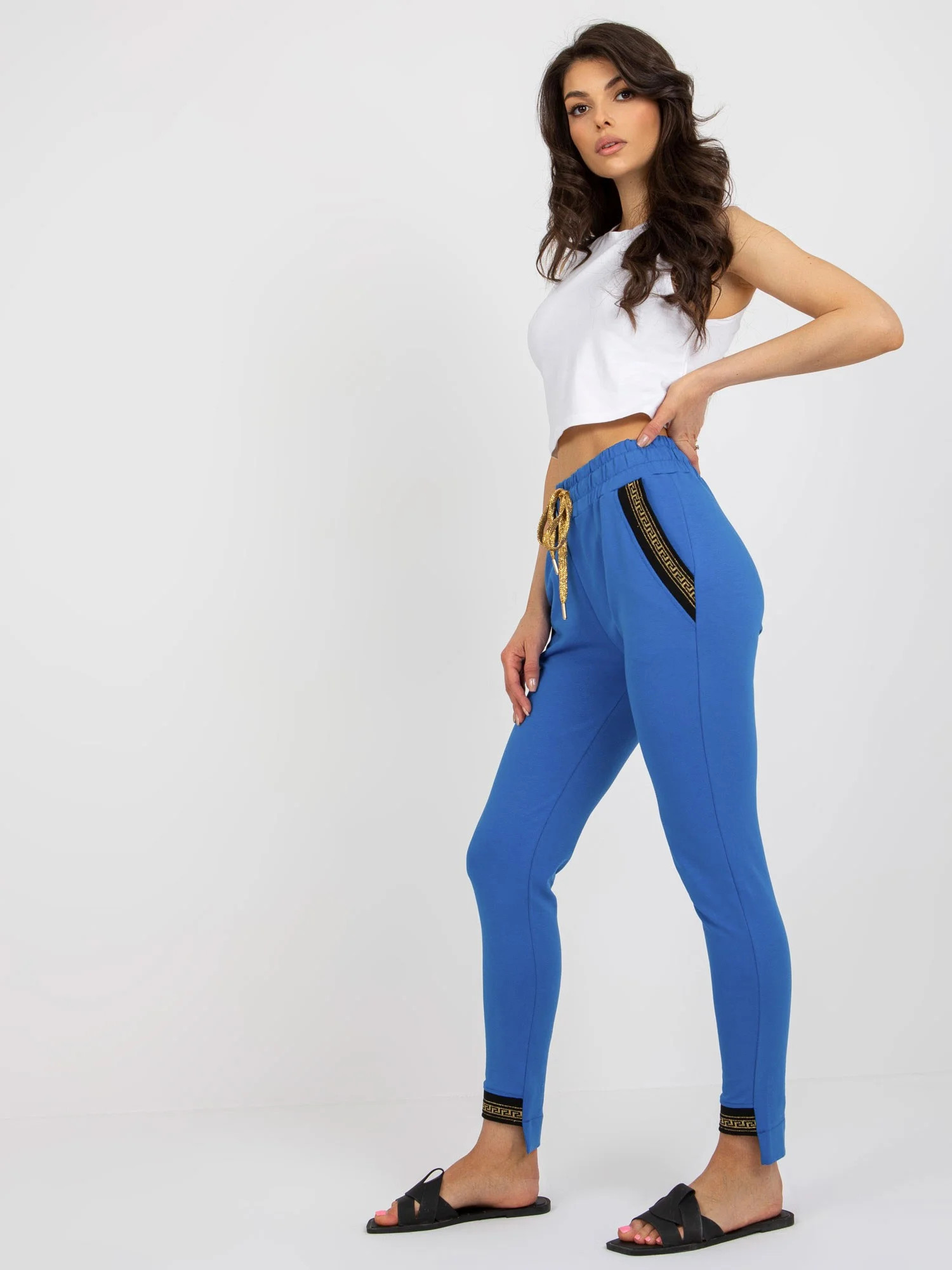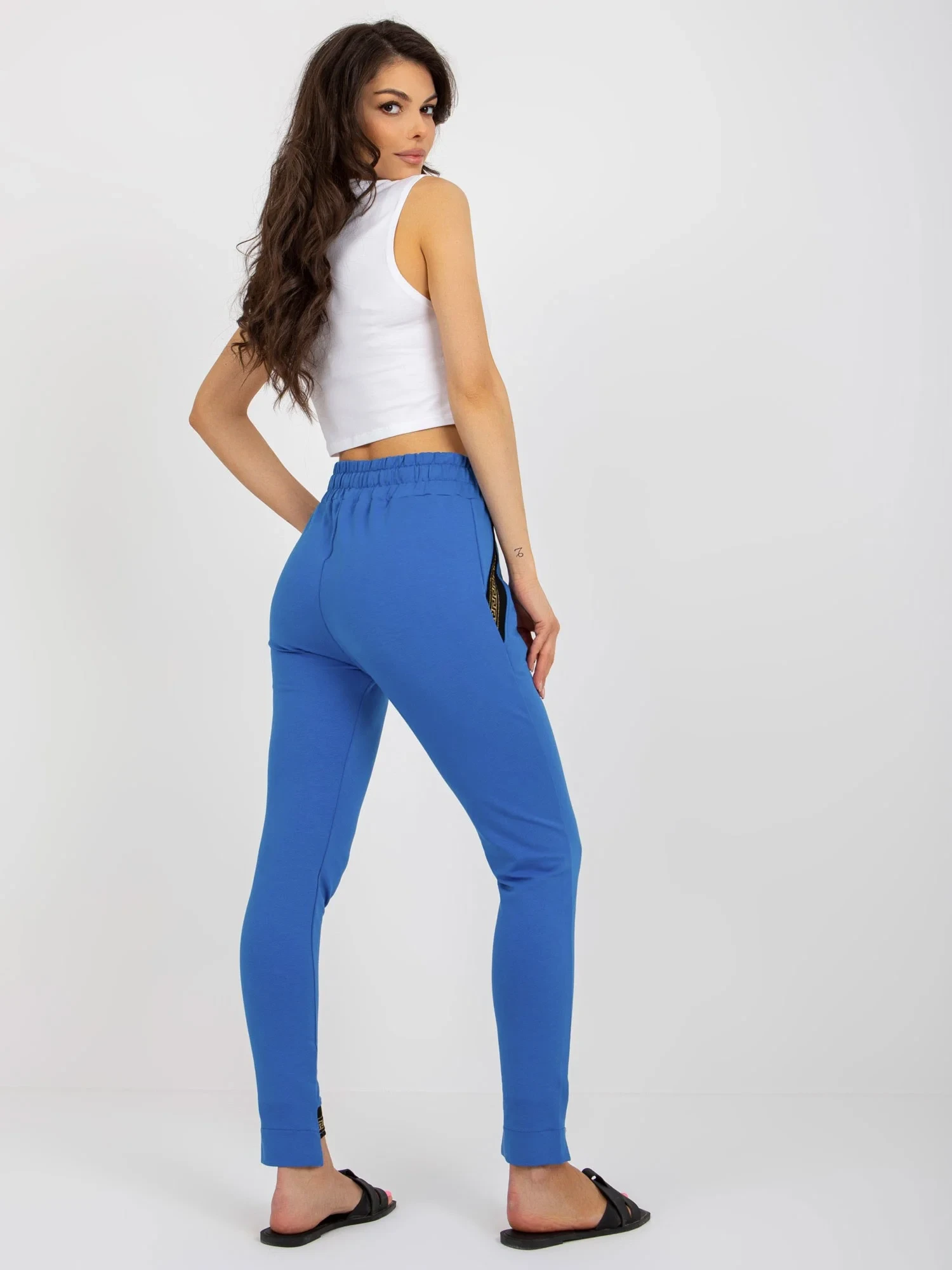 Rozměry kalhot ve velikosti S měřené na plocho: šířka v pase - 32 cm, výška v pase - 28 cm, celková délka - 95 cm.