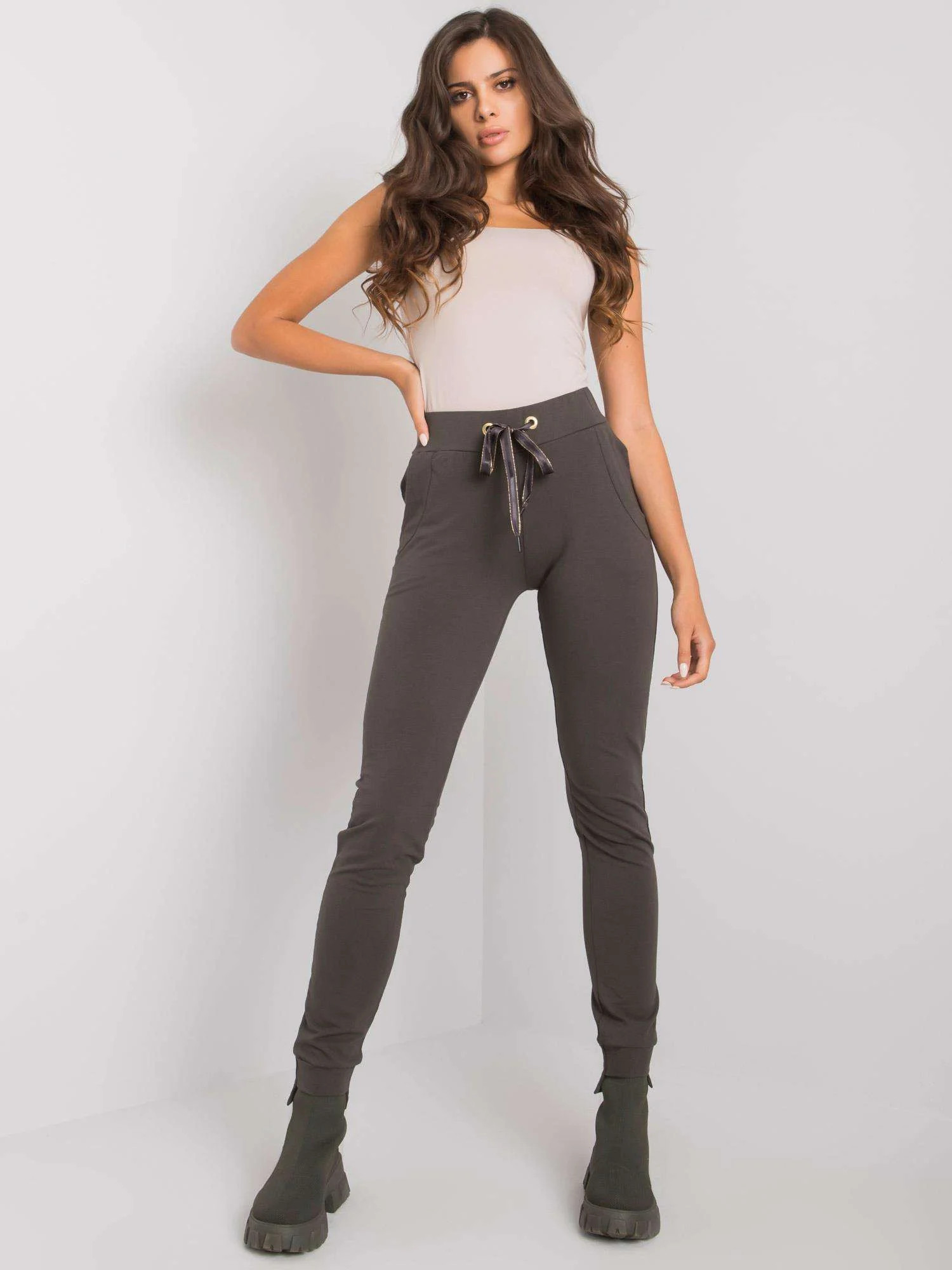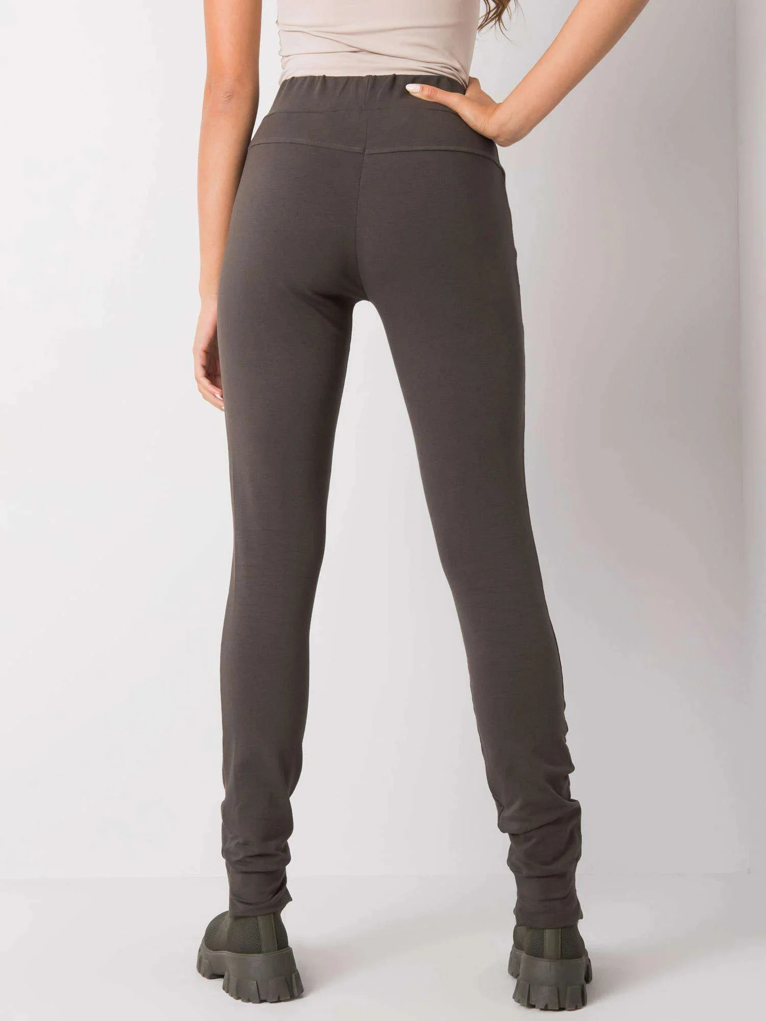 Tmavé khaki hladké tepláky.