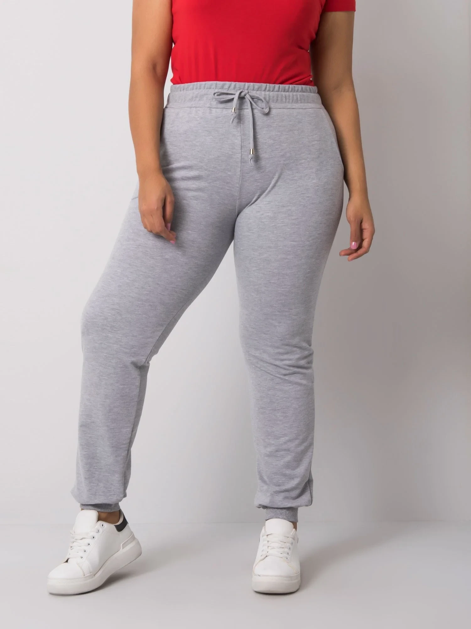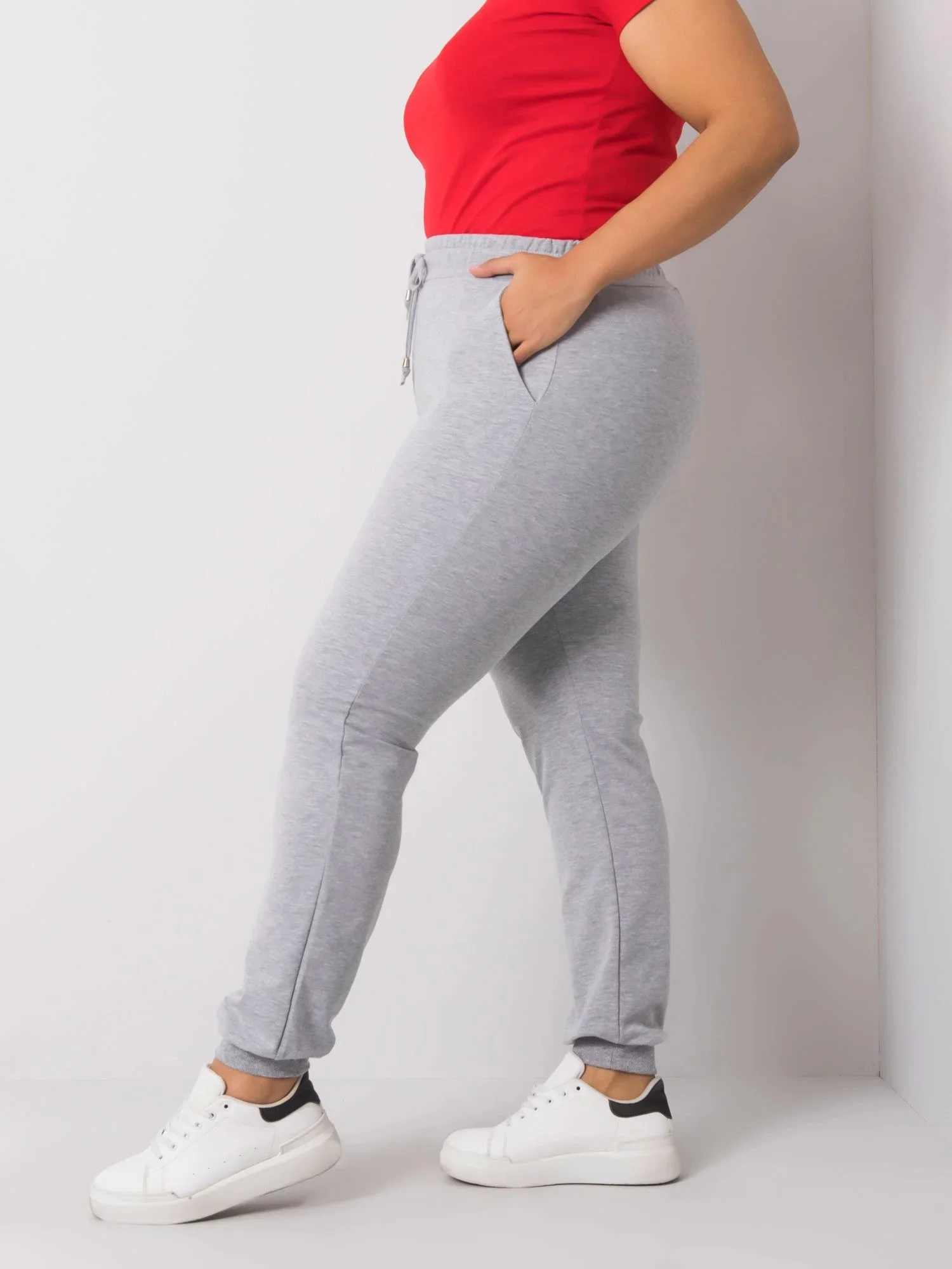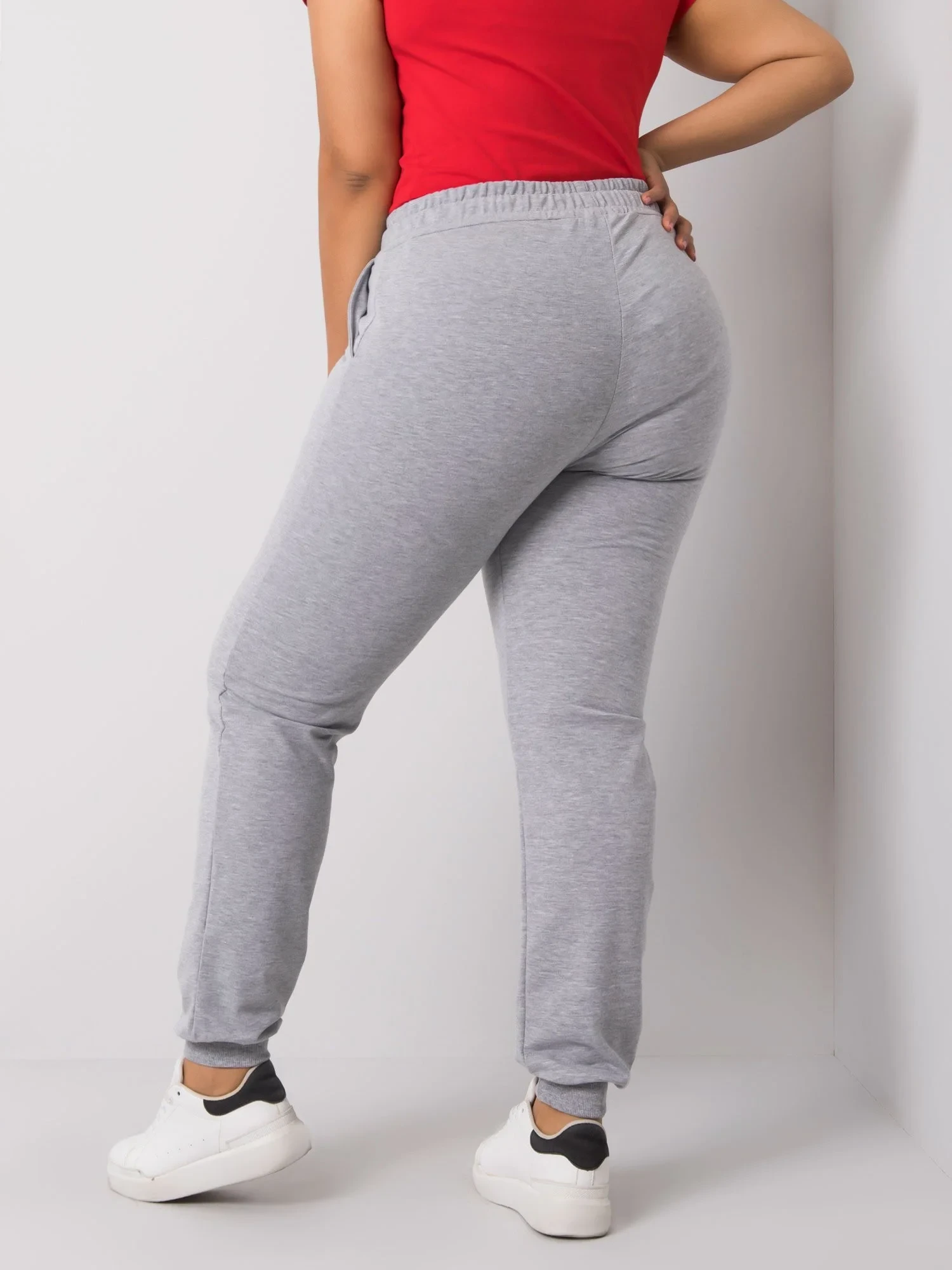 Šedé melanžové dámské plus size tepláky.