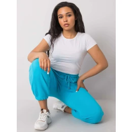 Modré bavlněné plus size tepláky.