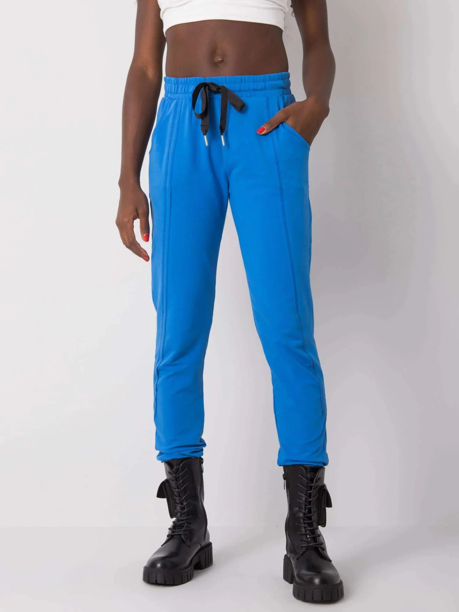 Tmavě modré dámské tepláky.