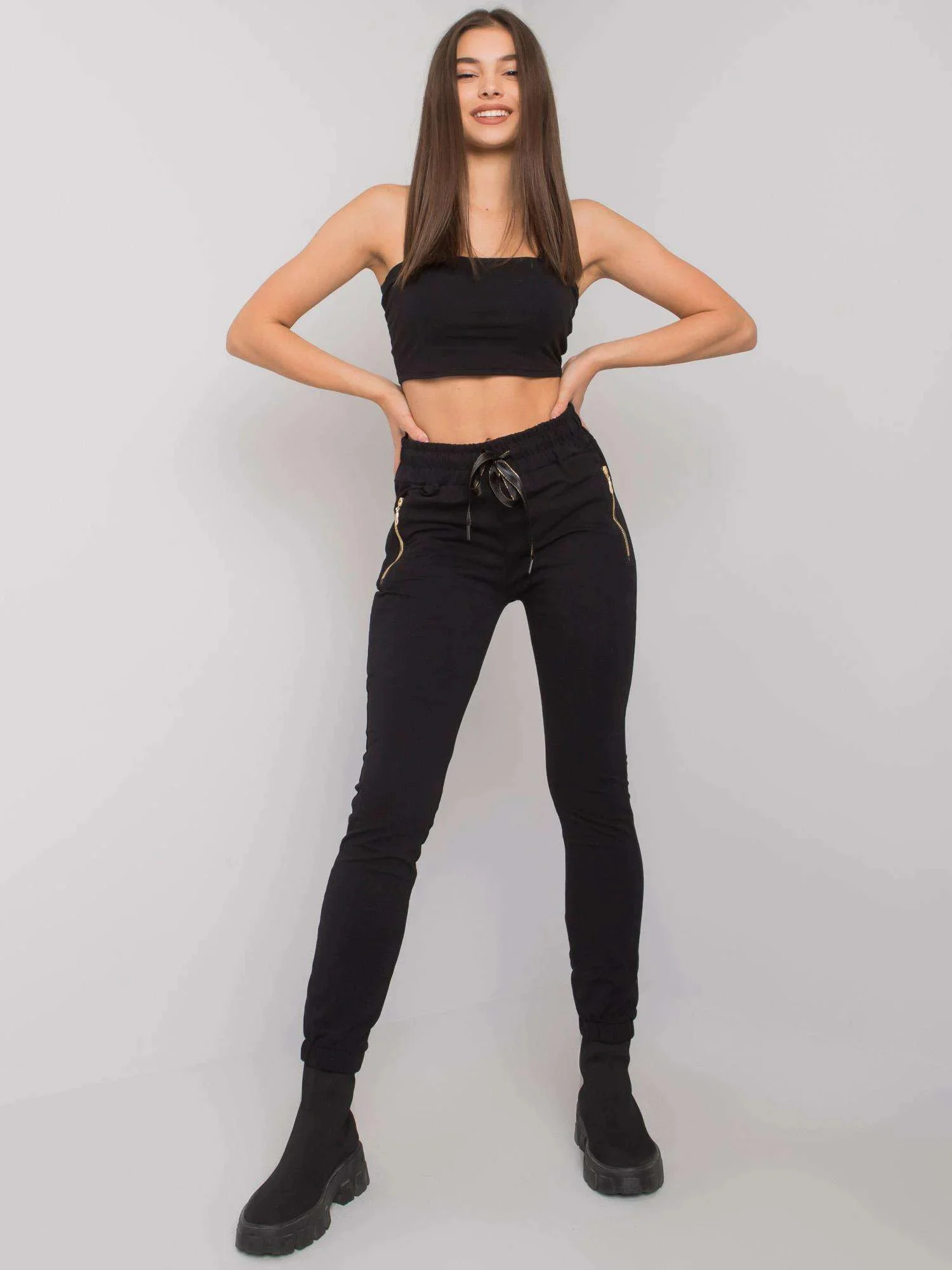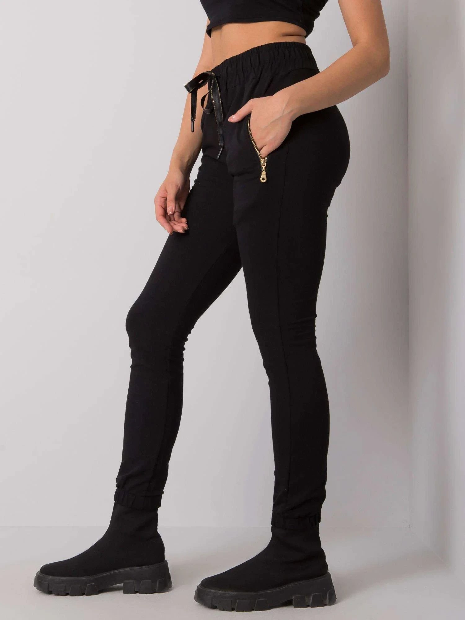 Černé dámské tepláky s kapsami.
