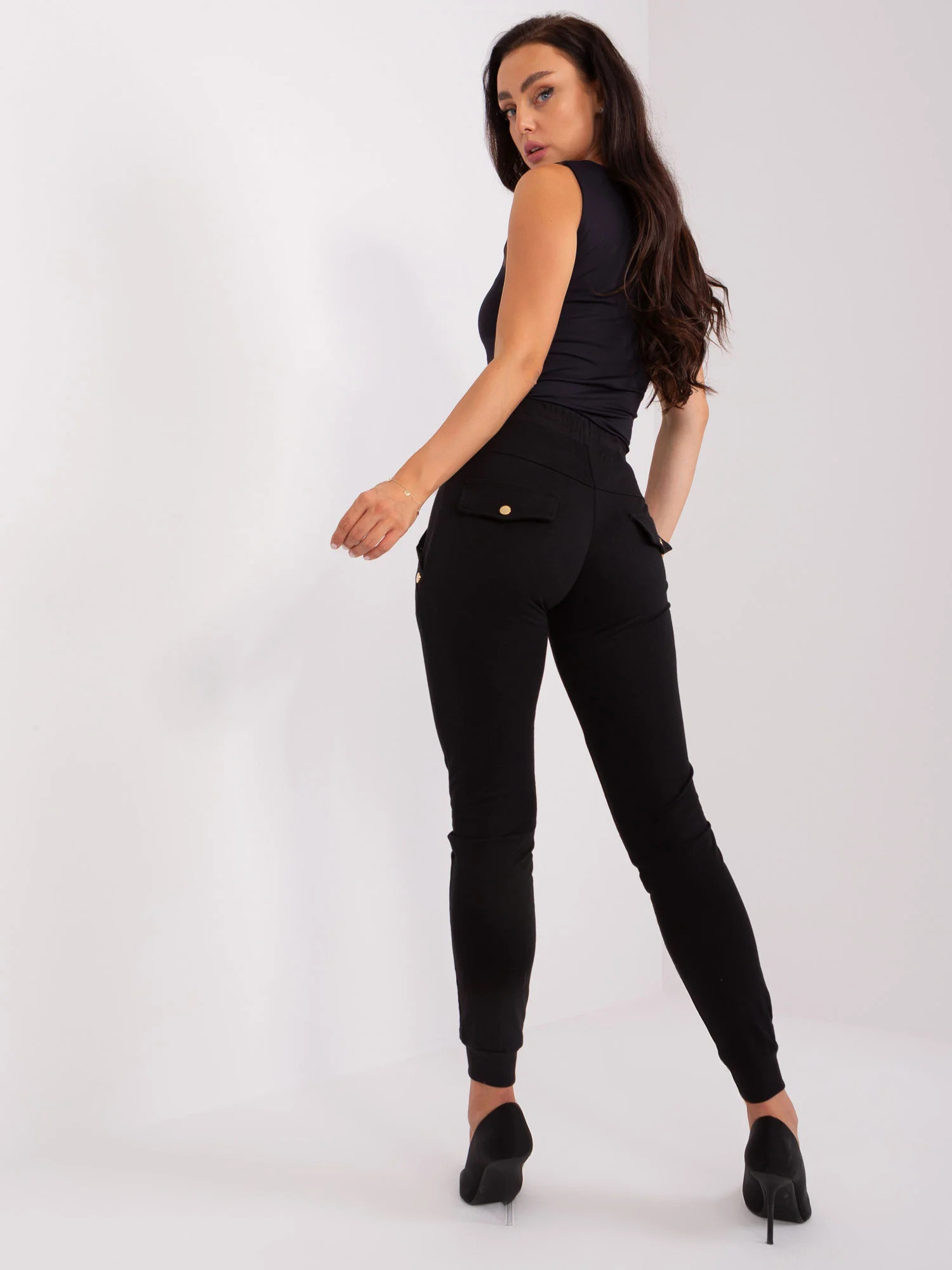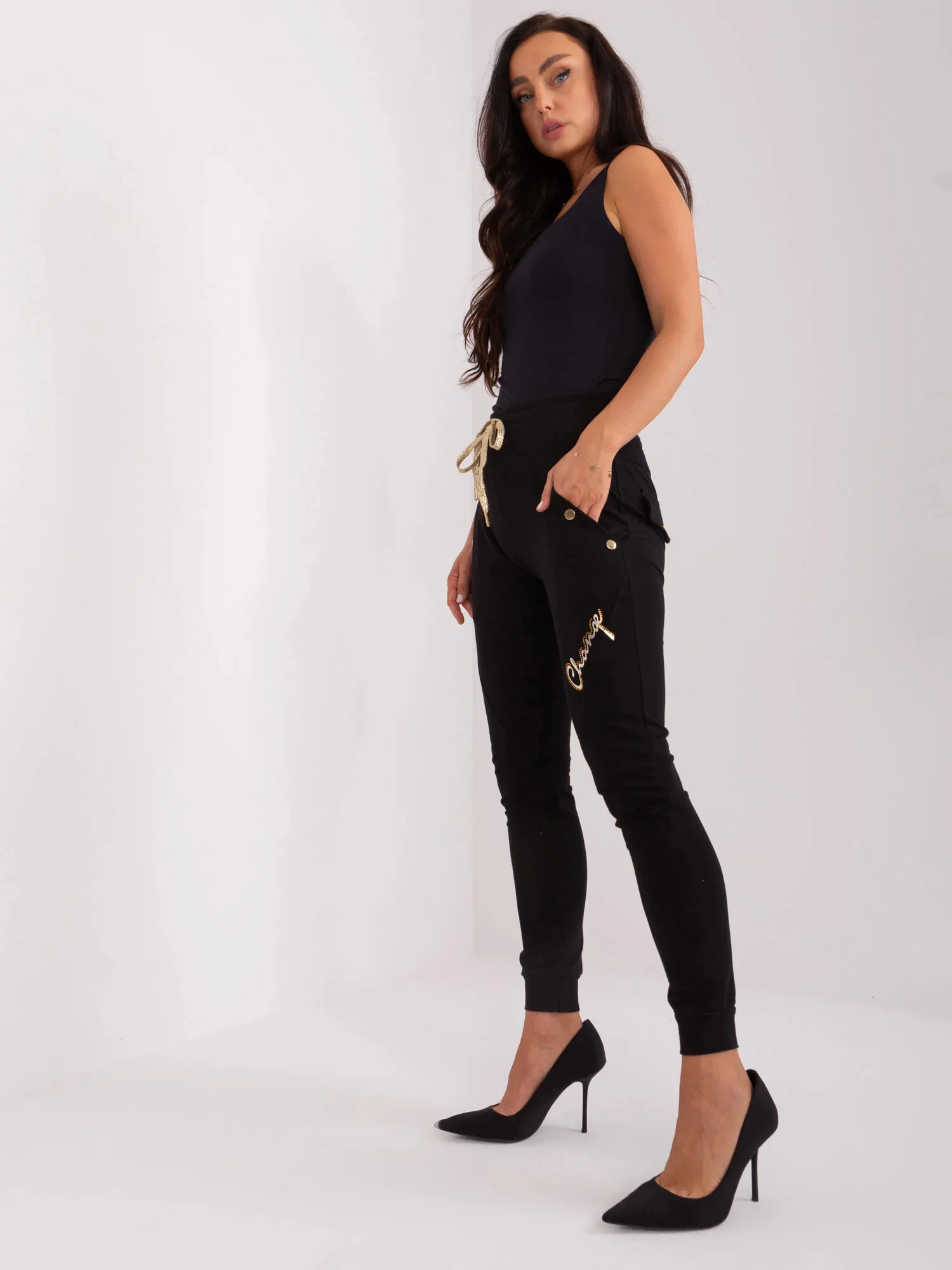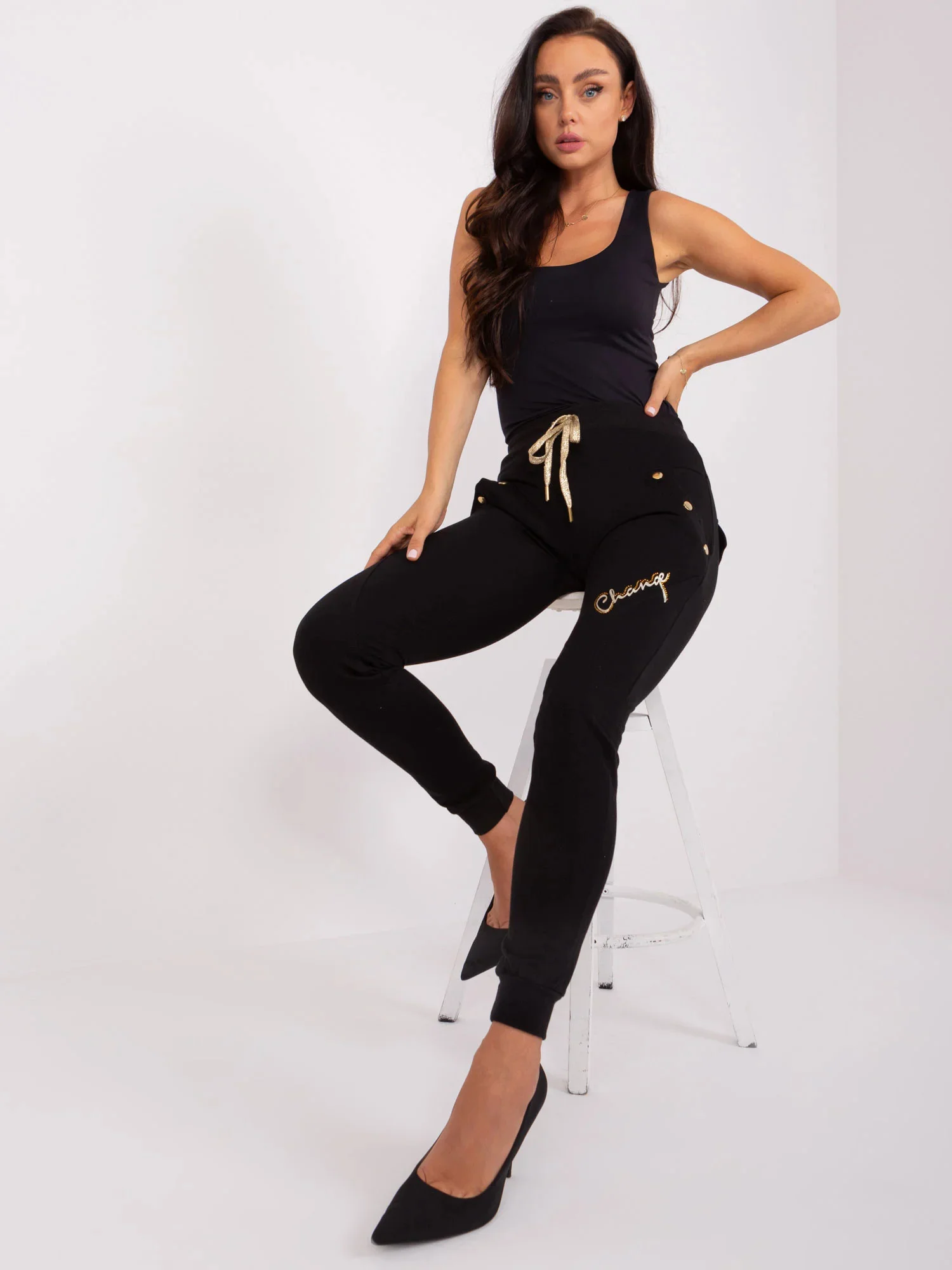 Černé bavlněné tepláky s aplikací .