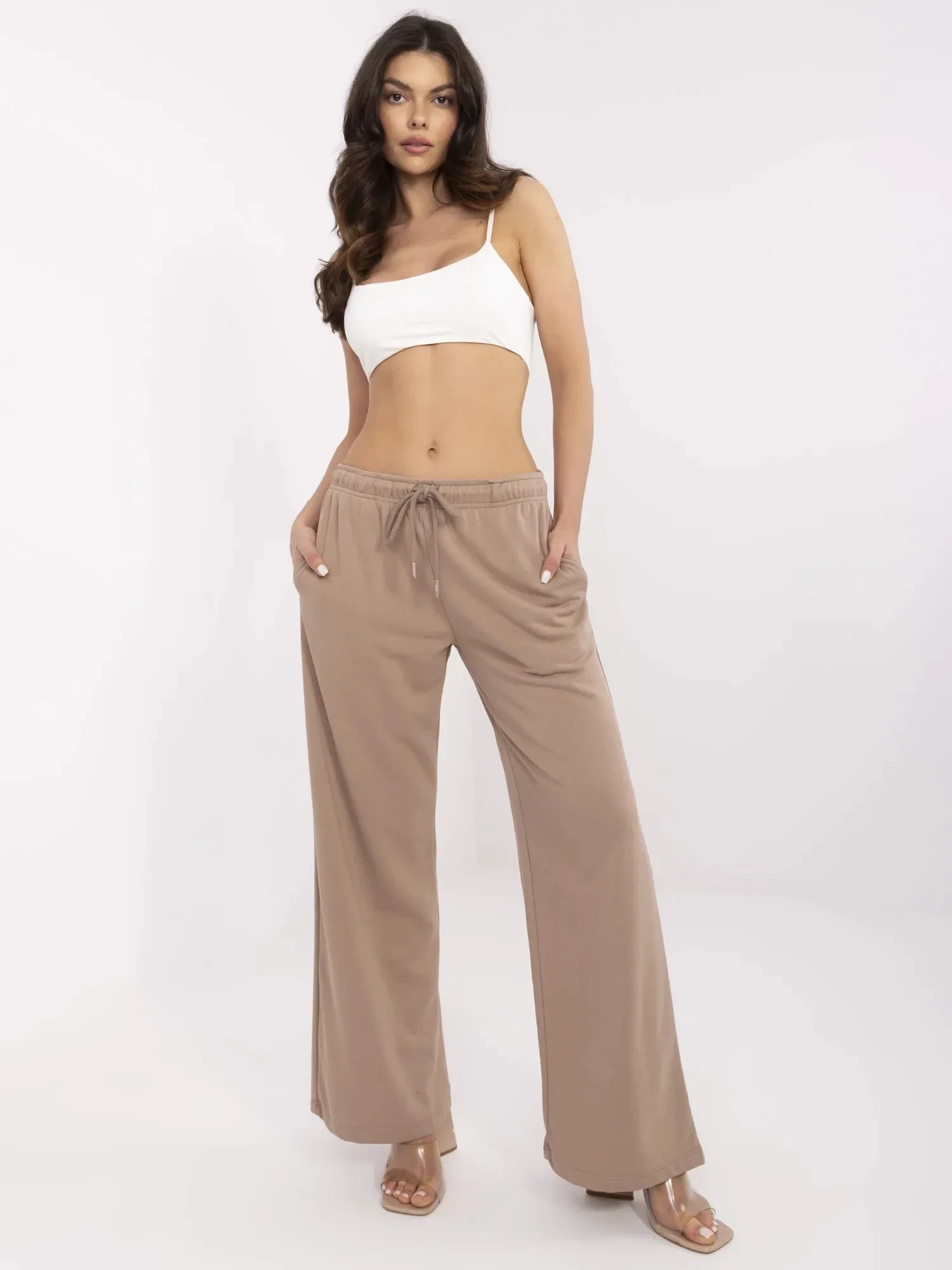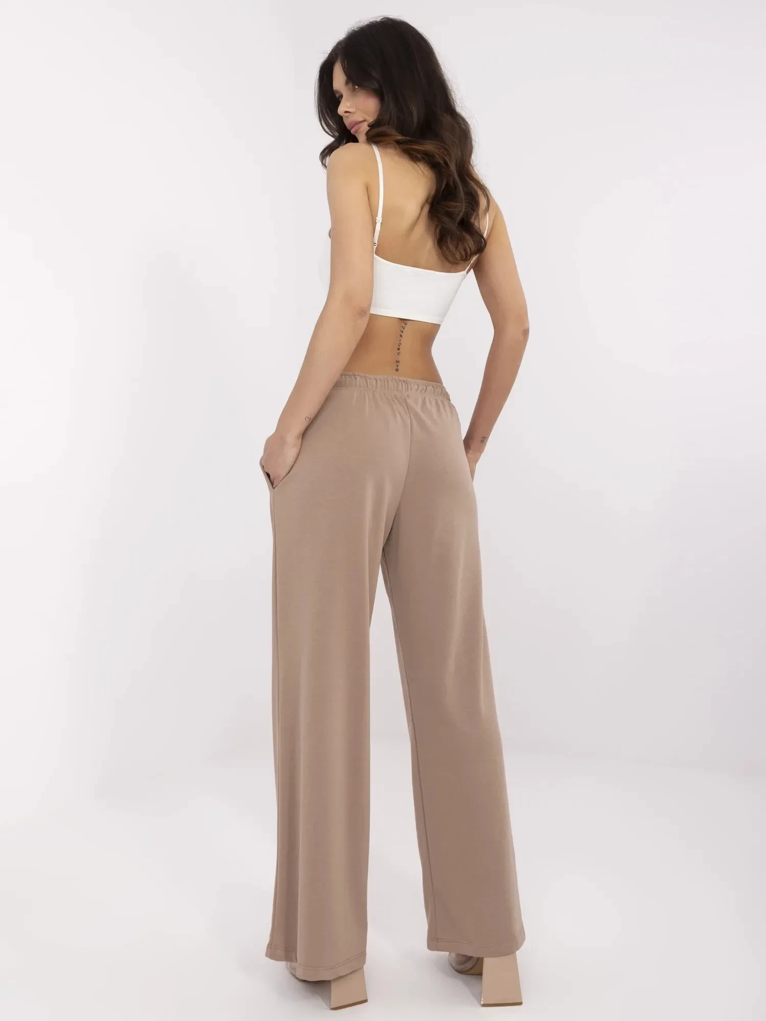 Rozměry kalhot ve velikosti S/M měřené na plocho: šířka v pase - 37 cm (na plocho), šířka v pase - 62 cm (při natažení), výška v pase - 29 cm, celková délka - 99 cm.