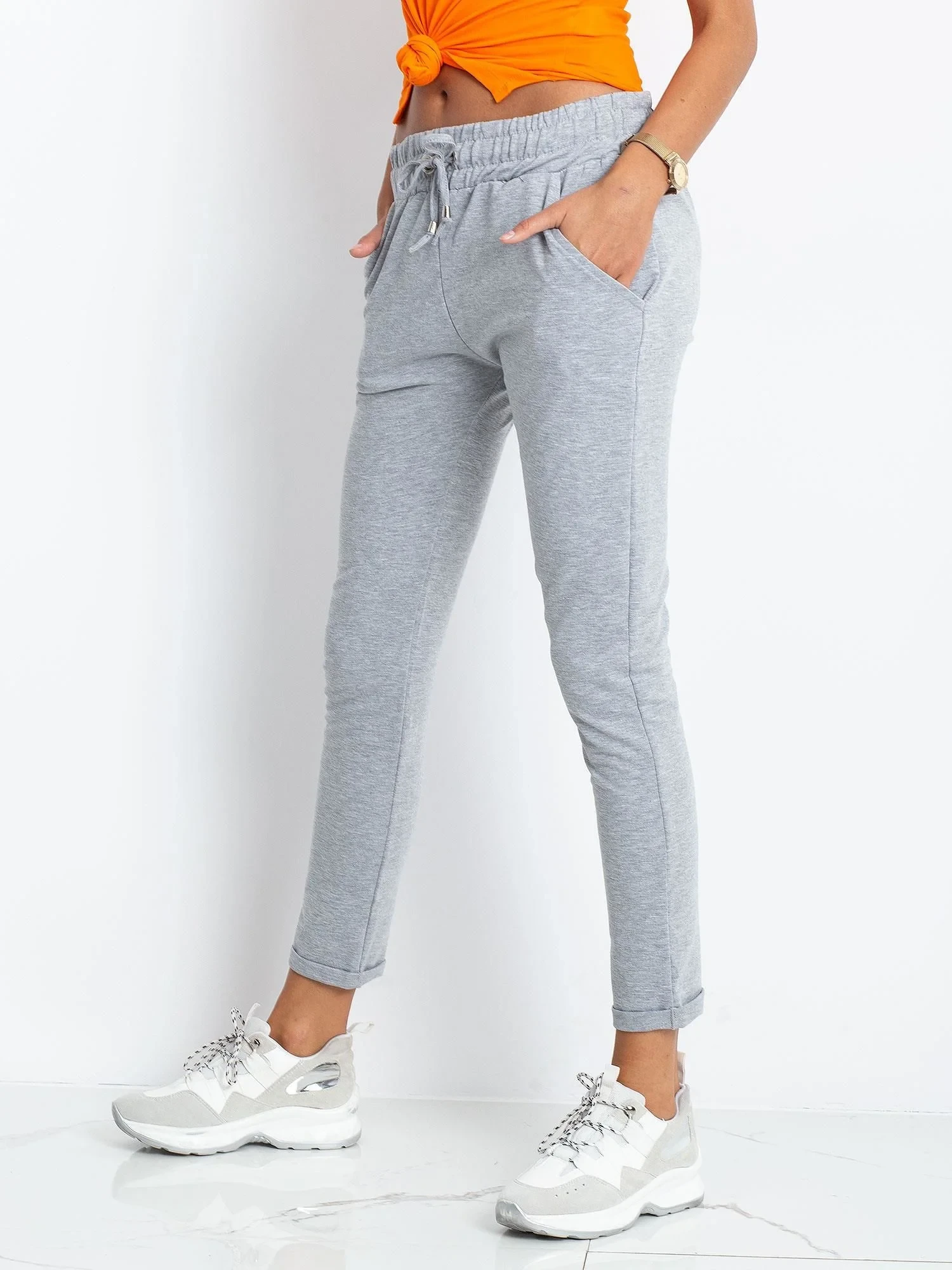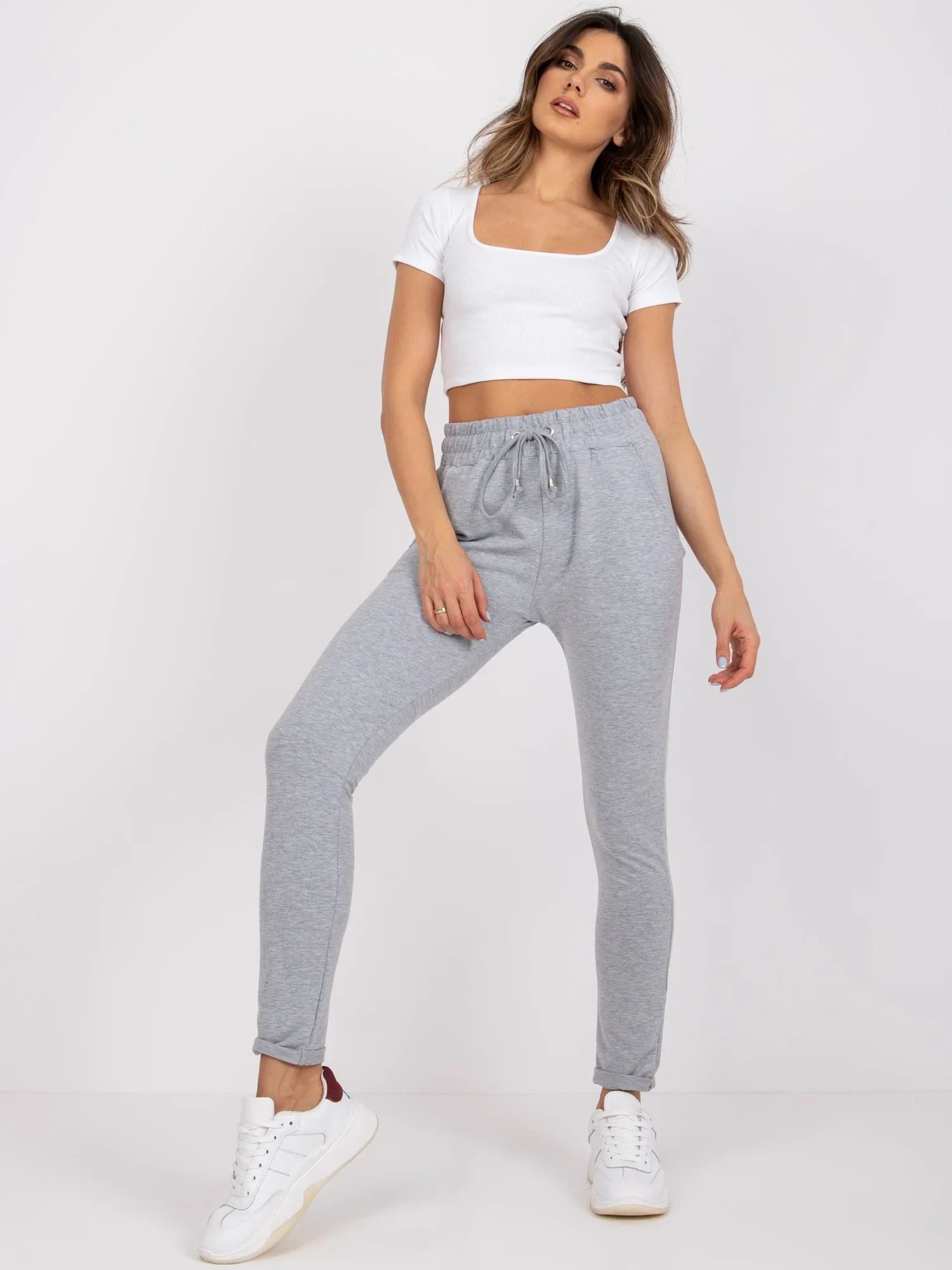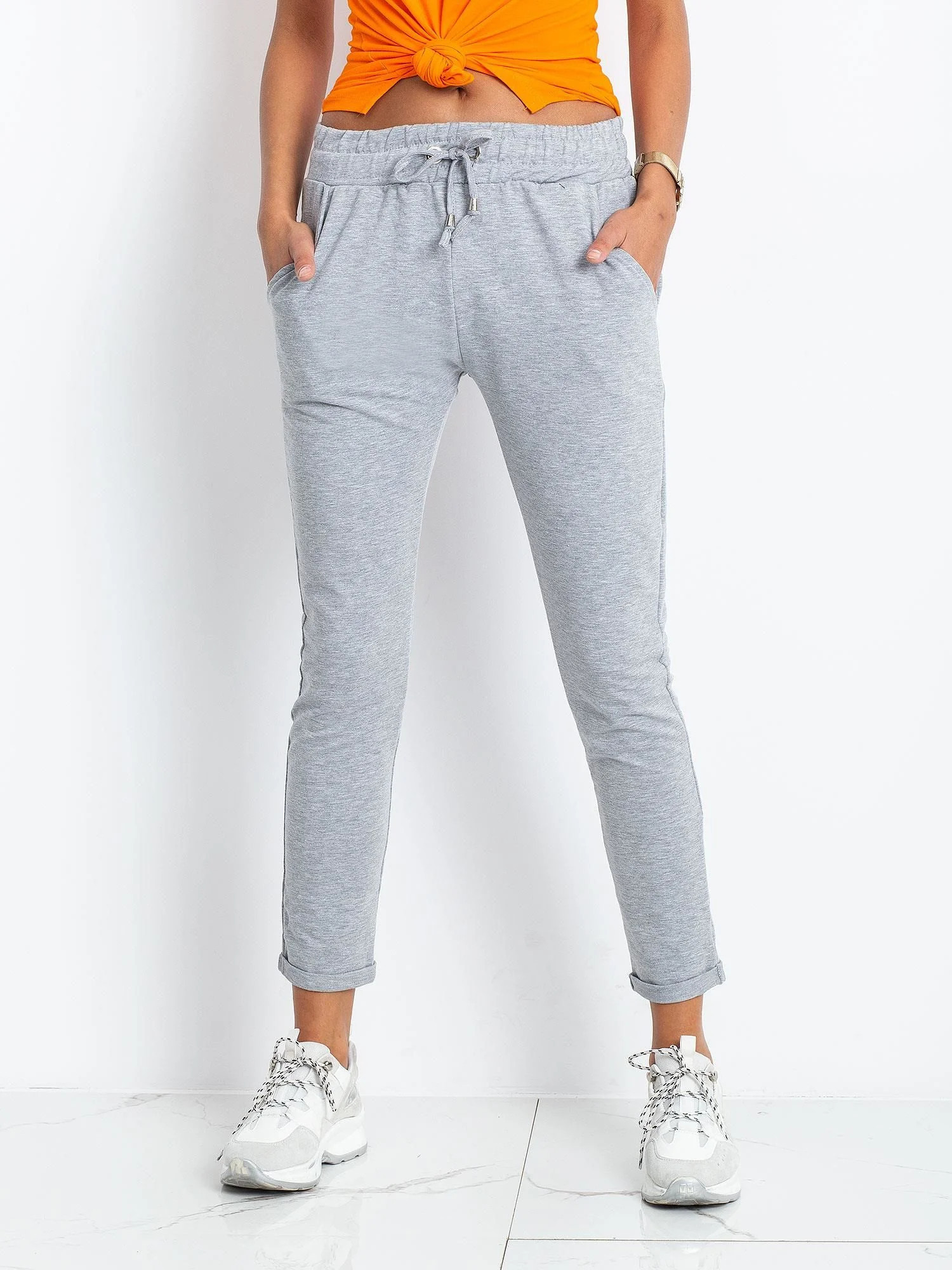 Šedé bavlněné tepláky.