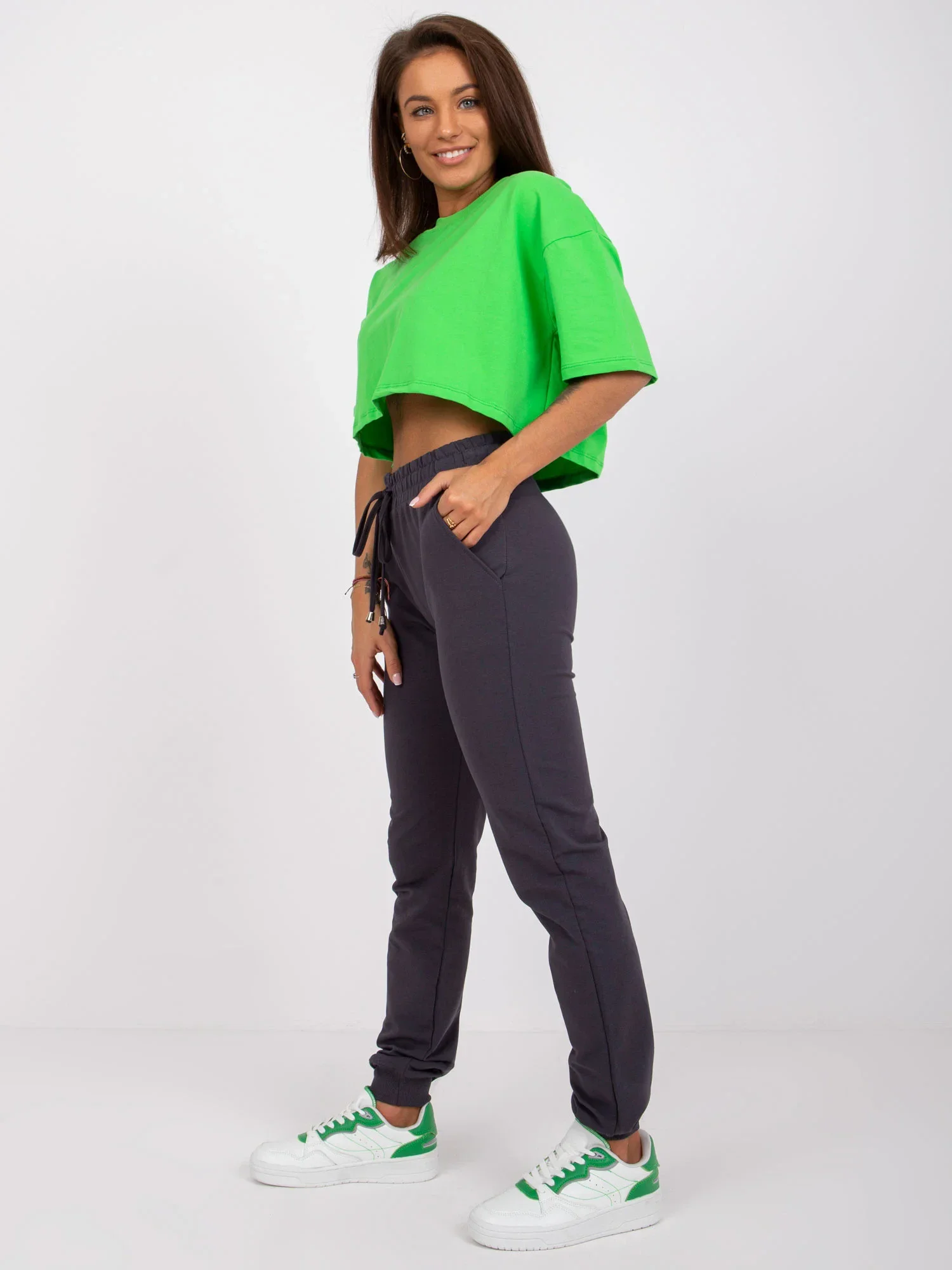Základní tepláky v grafitové barvě.