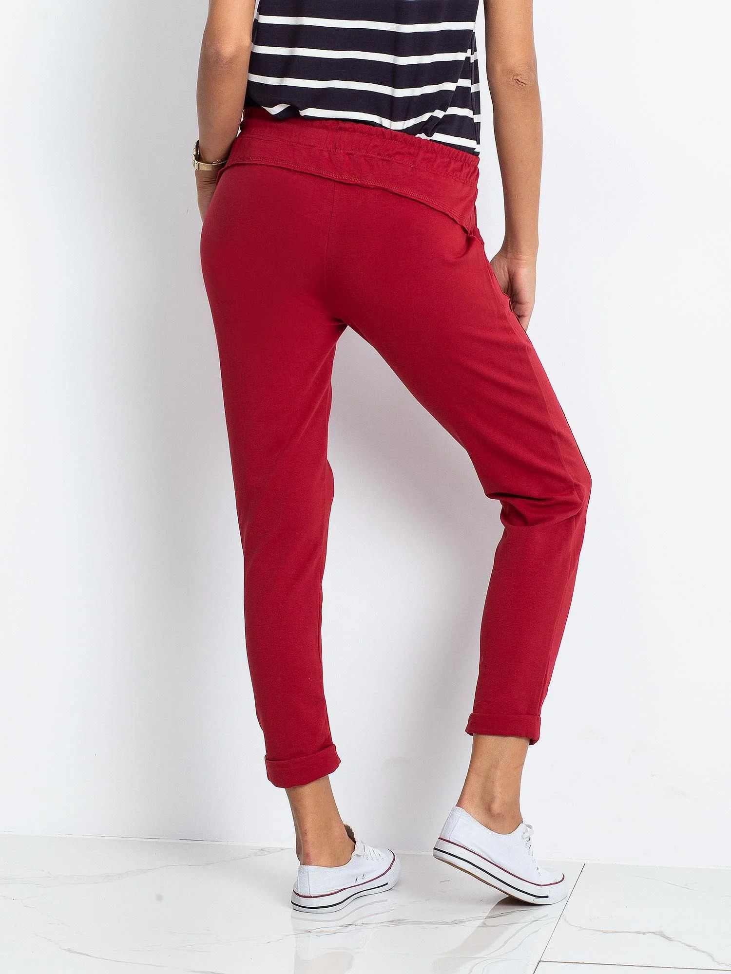 Rozměry kalhot ve velikosti XS měřené na plocho: šířka v pase - 32 cm, délka - 90 cm, výška v pase - 26 cm.