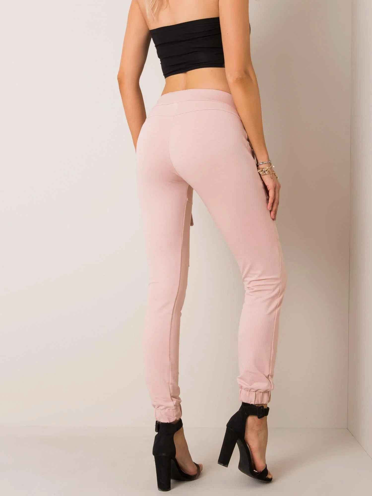 Dámské bavlněné tepláky ve špinavě růžové barvě.