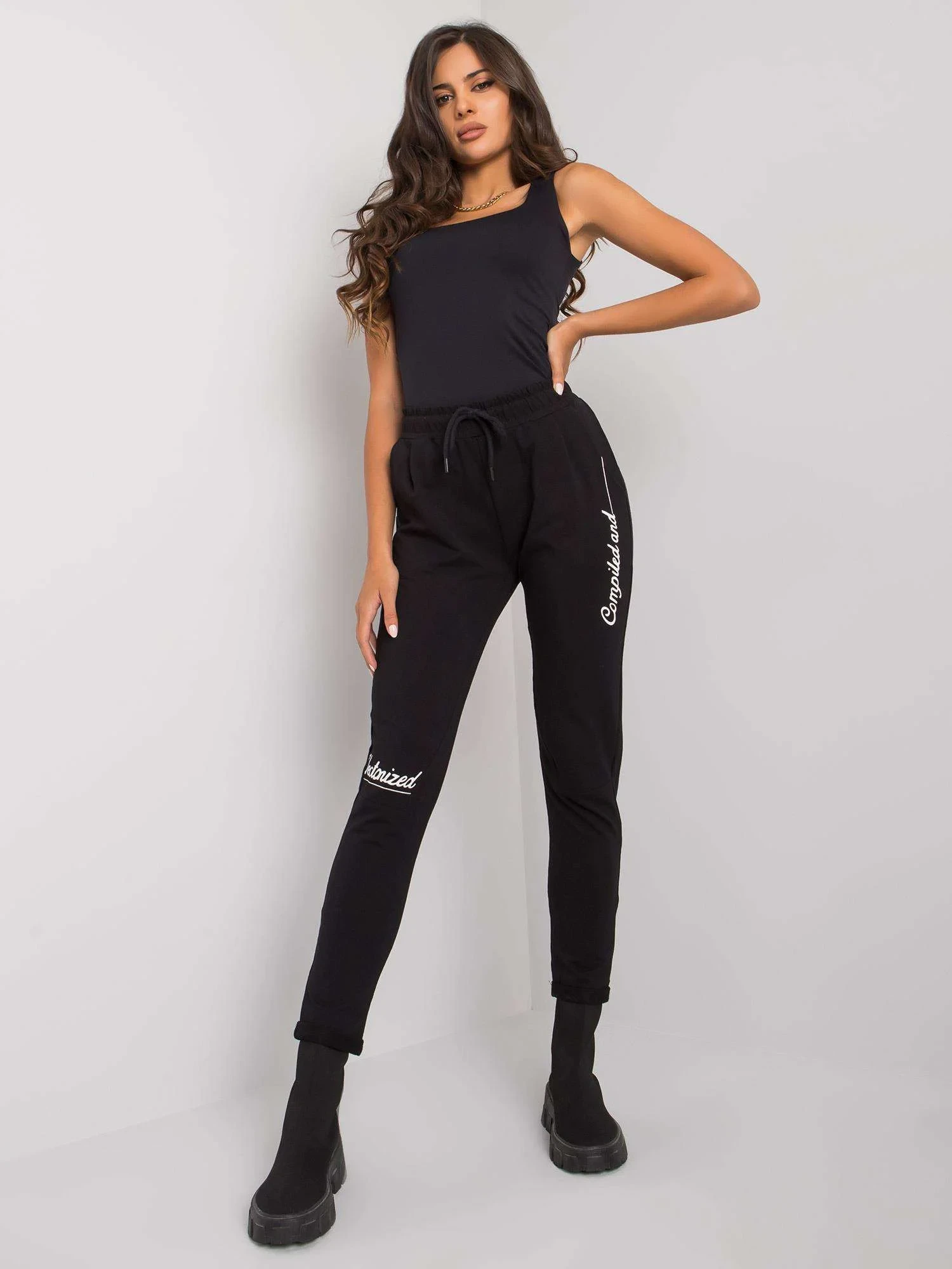 Černé bavlněné tepláky.