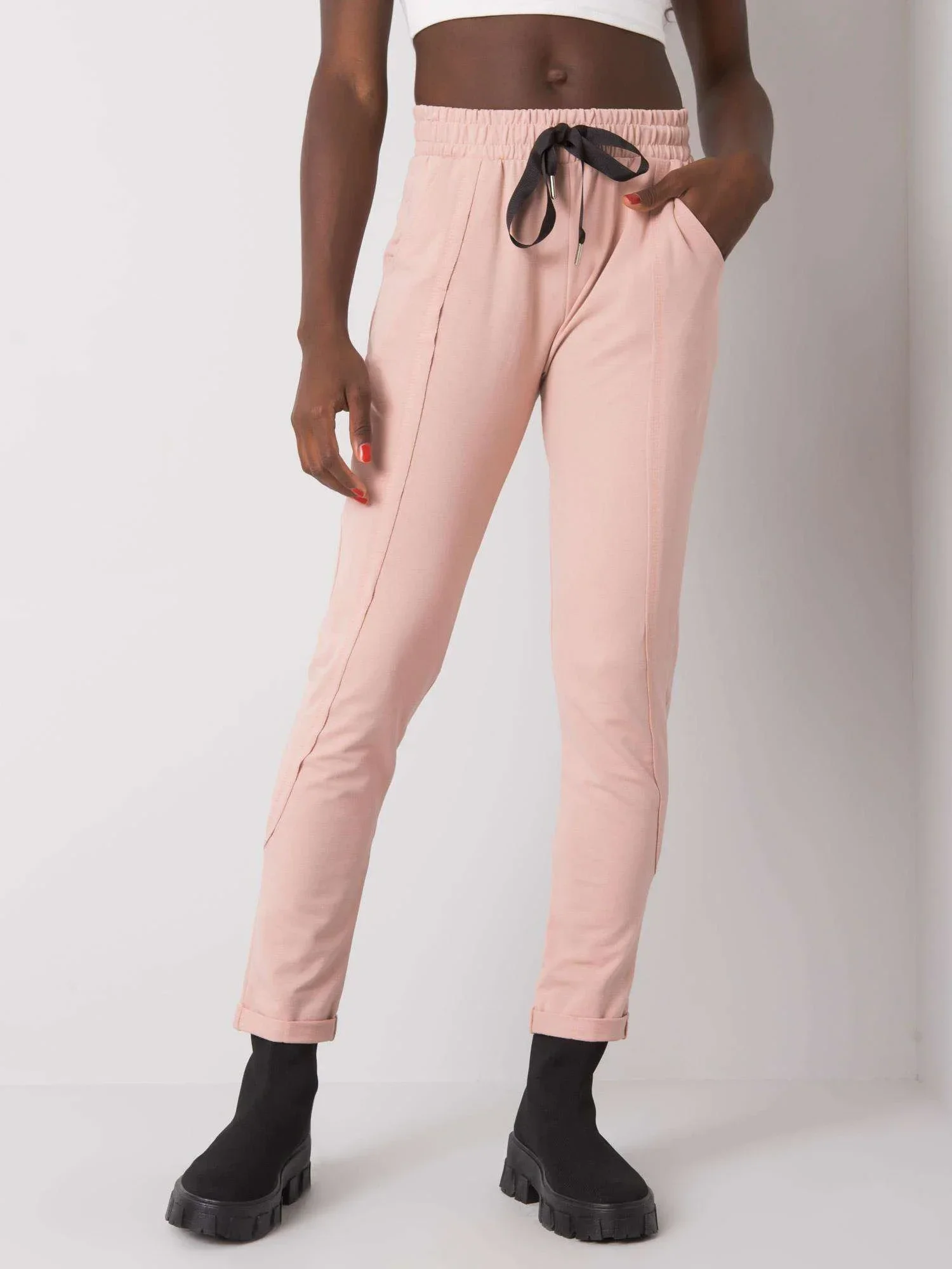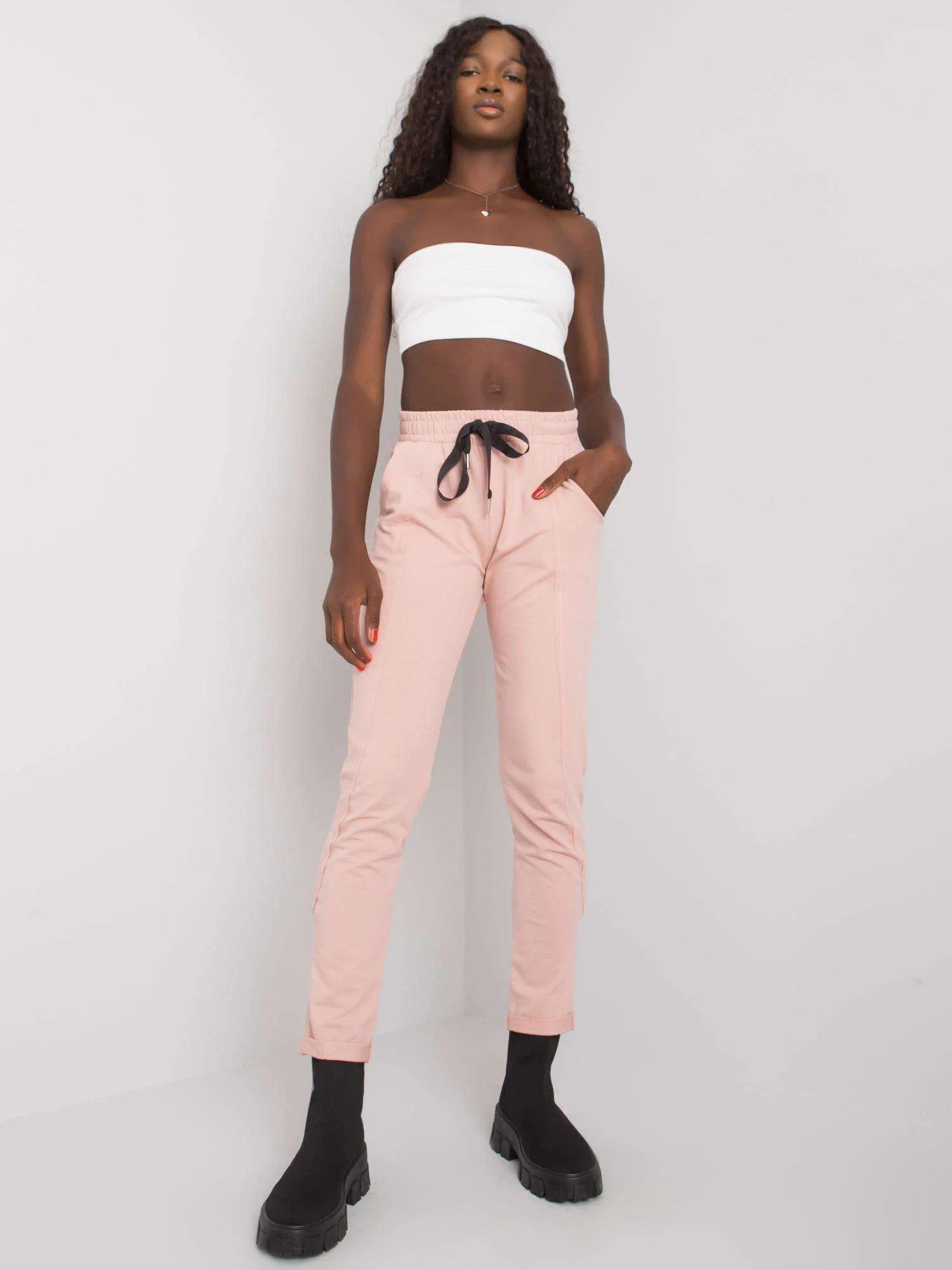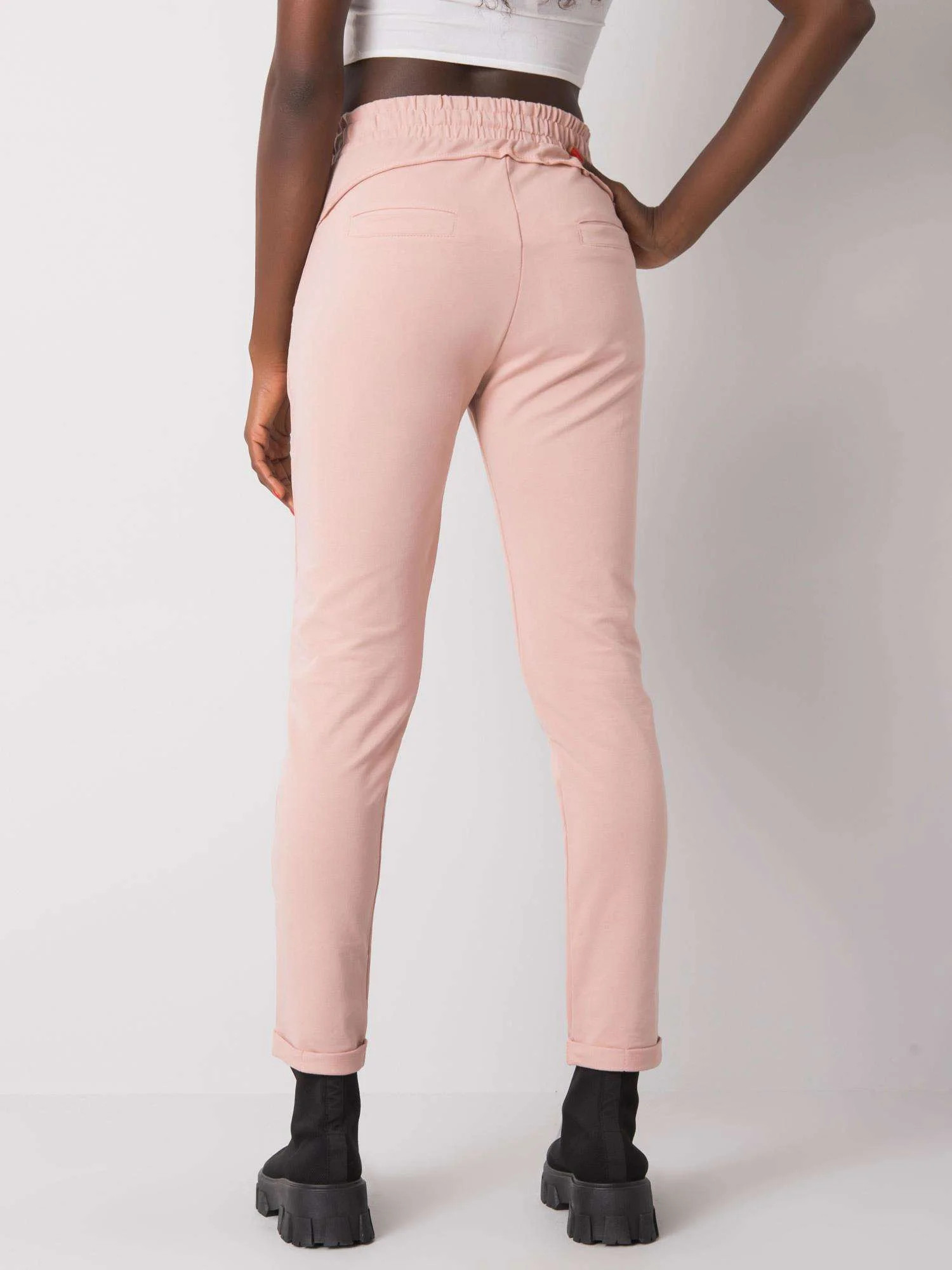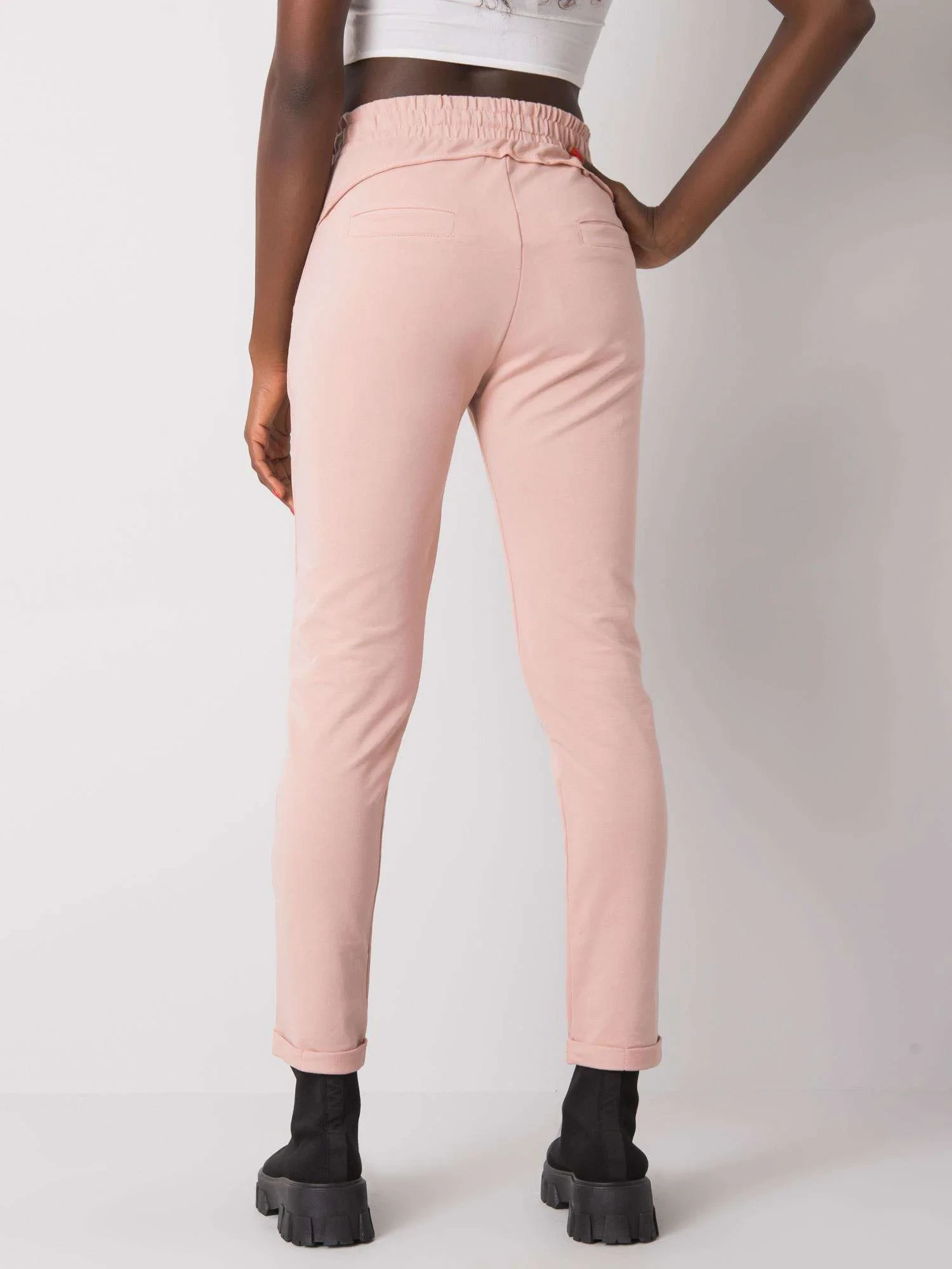 Špinavě růžové dámské tepláky.