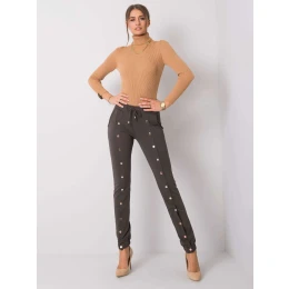 Dámské bavlněné kalhoty v tmavě khaki barvě.