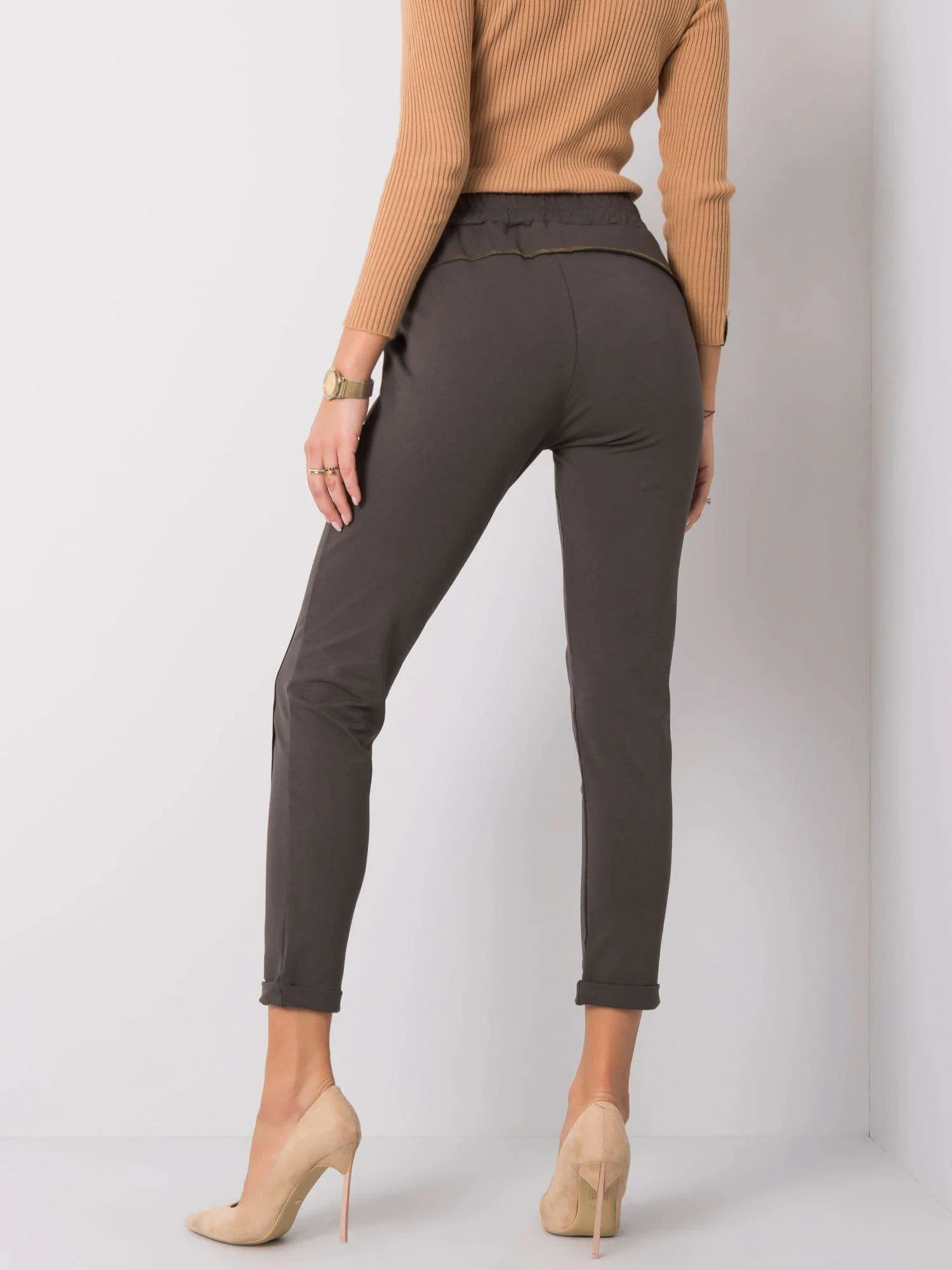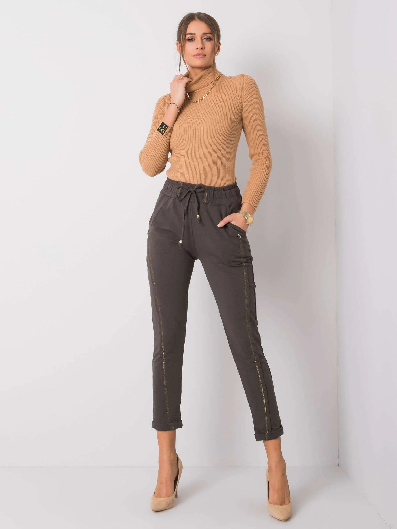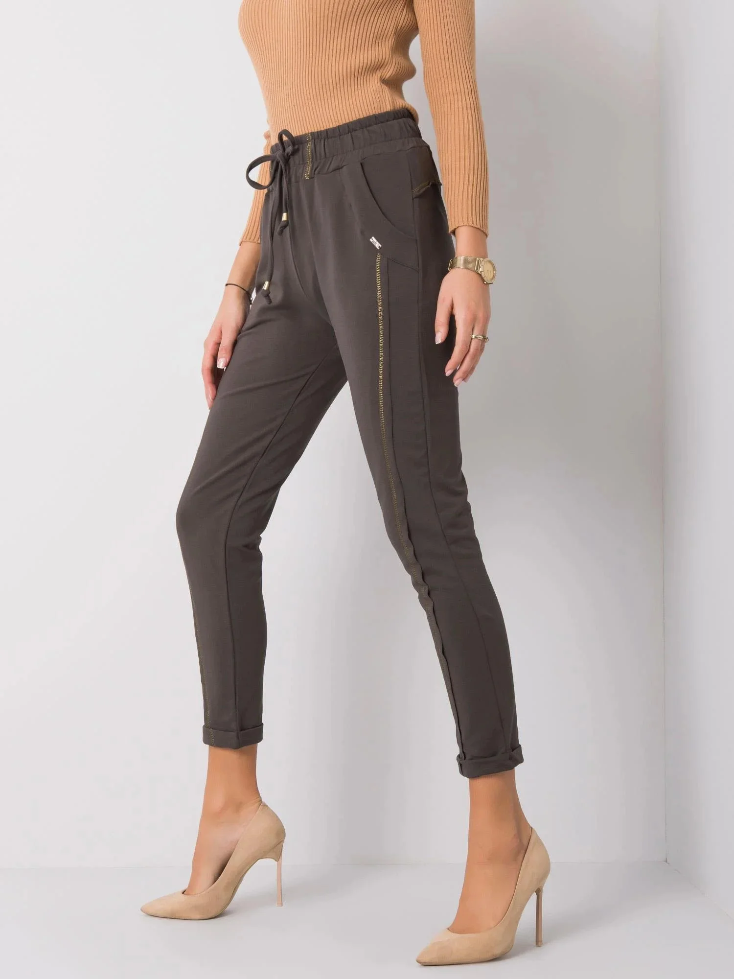 Dámské tepláky v tmavě khaki barvě.
