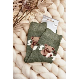 Teplé Bavlněné Ponožky S Medvědem Zelené