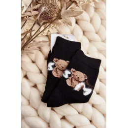 Teplé bavlněné ponožky s medvídkem, černé