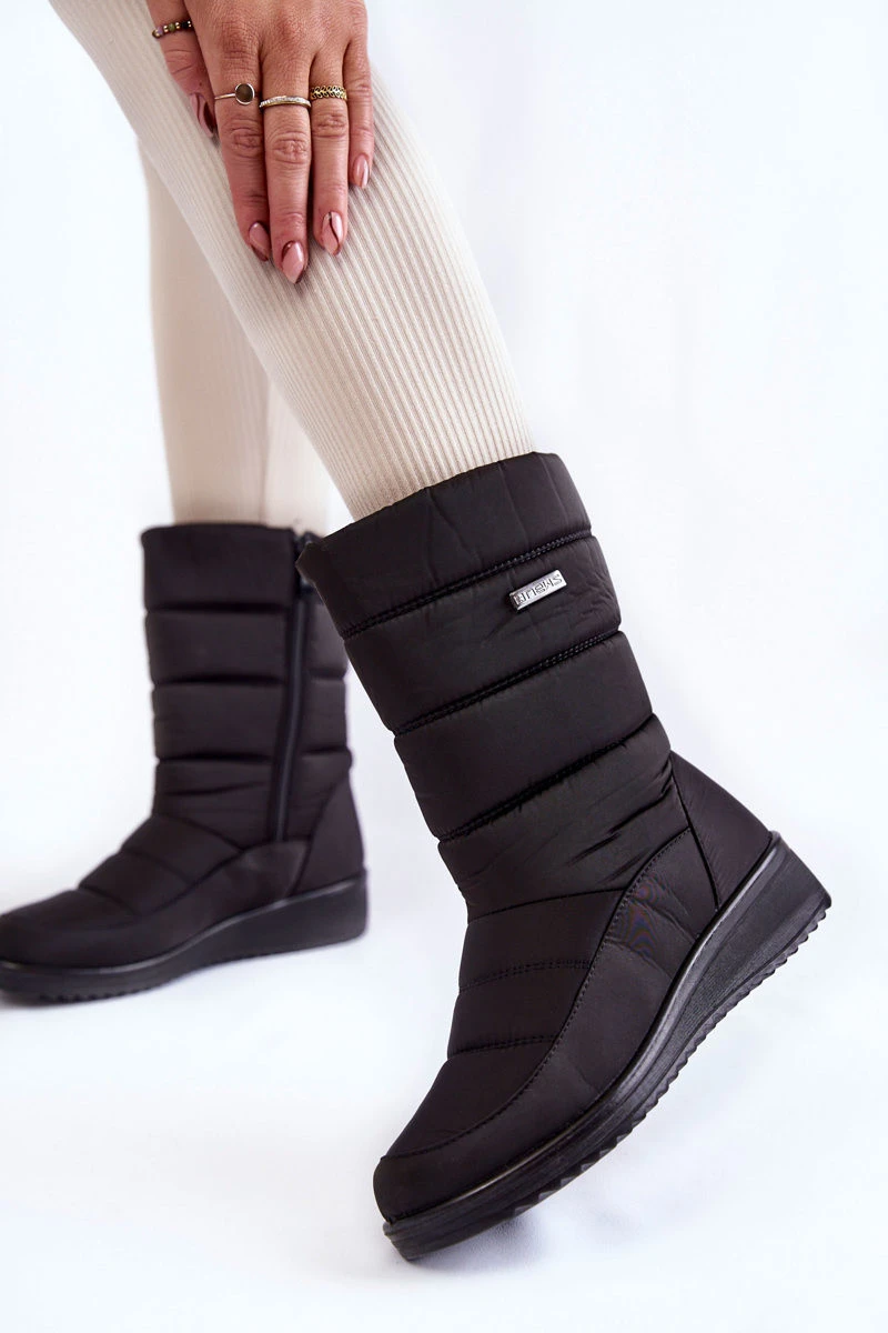 Dámské vysoké boty do sněhu jsou perfektní volbou pro chladné dny! Na svršku mají prošívání. Zapuštěné na platformě s klínem. Sněhule jsou zateplené na dotek příjemným kožíškem. Model je vyroben z vysoce kvalitního materiálu. Drážkovaná podrážka zajistí stabilitu při každém kroku. Tento model byste rozhodně měli mít ve svém šatníku! Při výběru velikosti použijte tabulku velikostí.