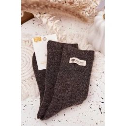 Teplé dámské vlněné ponožky s nášivkou – tmavě hnědé
