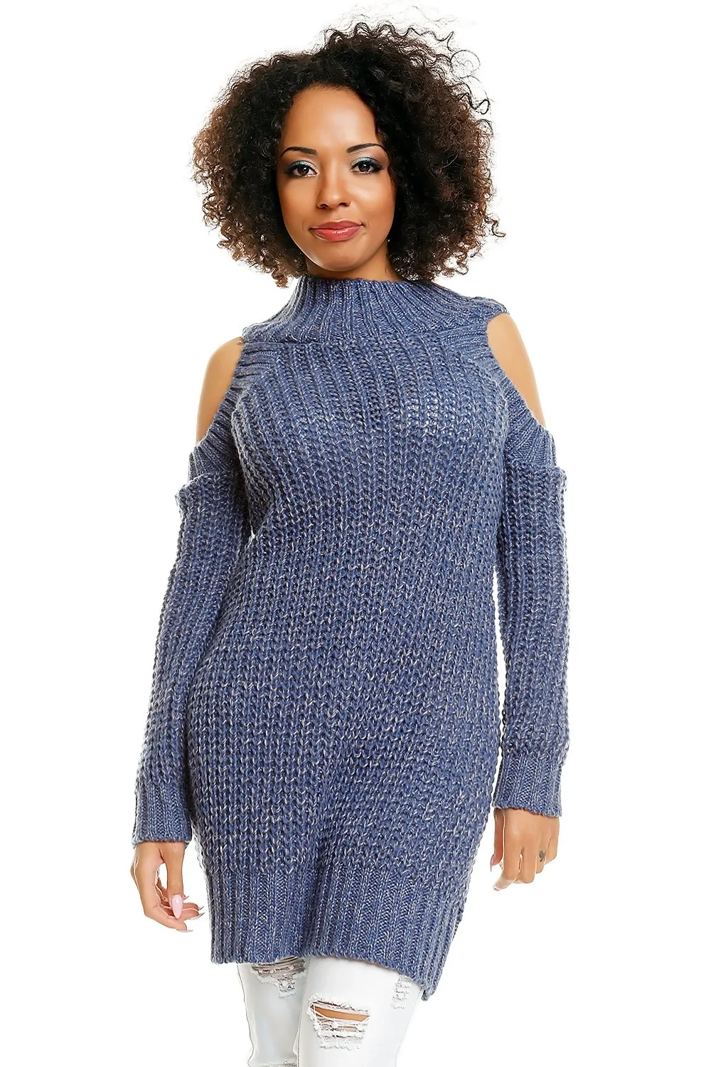 Dlouhý těhotenský svetr s polovičním zipem nahoře a širokým žebrováním dole, vyrobený z měkké, nadýchané příze z akrylu s příměsí mohéru. Originální dlouhé rukávy s koketně odhalenými rameny a příjemná příze zaručují pohodlí a módní vzhled.