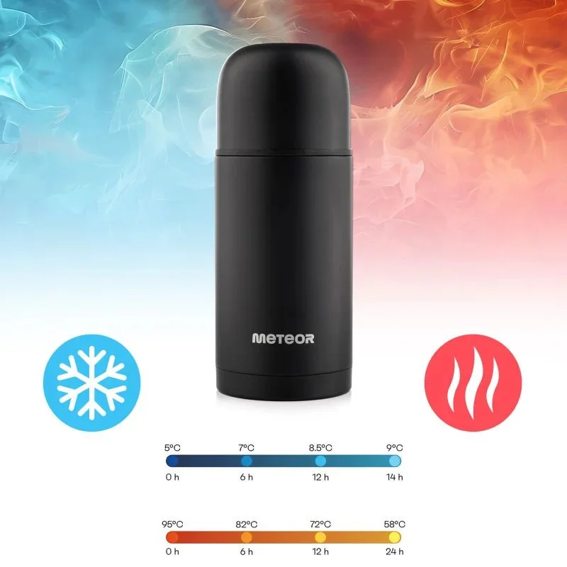 Všestranné využití - v termosce budete uchovávat nejen horké tekutiny, jako je horká voda užitečná pro přípravu pokrmů, ale budete v ní také přenášet kávu nebo čaj, což je nezbytné zejména při delším pobytu mimo domov. Termosku stačí před naplněním řádně připravit - několik minut před vložením horkého nápoje nalijte vařící vodu nebo před vložením studené tekutiny velmi studenou vodu, abyste zvýšili její tepelné vlastnosti. S termoskou Meteor si budete moci vychutnat teplý nápoj kdykoli!