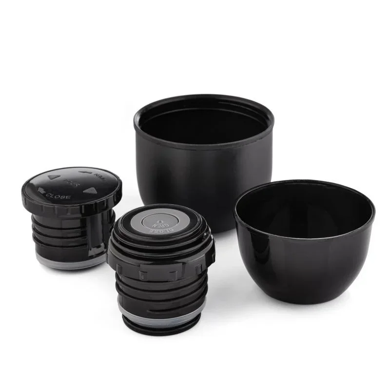 - Lehká a kompaktní konstrukce se vyznačuje širokým otvorem, který usnadňuje plnění a čištění termosky. Funkční víčko slouží také jako hrnek na pití s izolační vložkou, pod nímž je druhý hrnek pro sdílení nápoje s ostatními. Tlačítková nastavitelná zátka usnadňuje nalévání jednou rukou a je opatřena těsněním, které zabraňuje úniku a ztrátám tepla.
