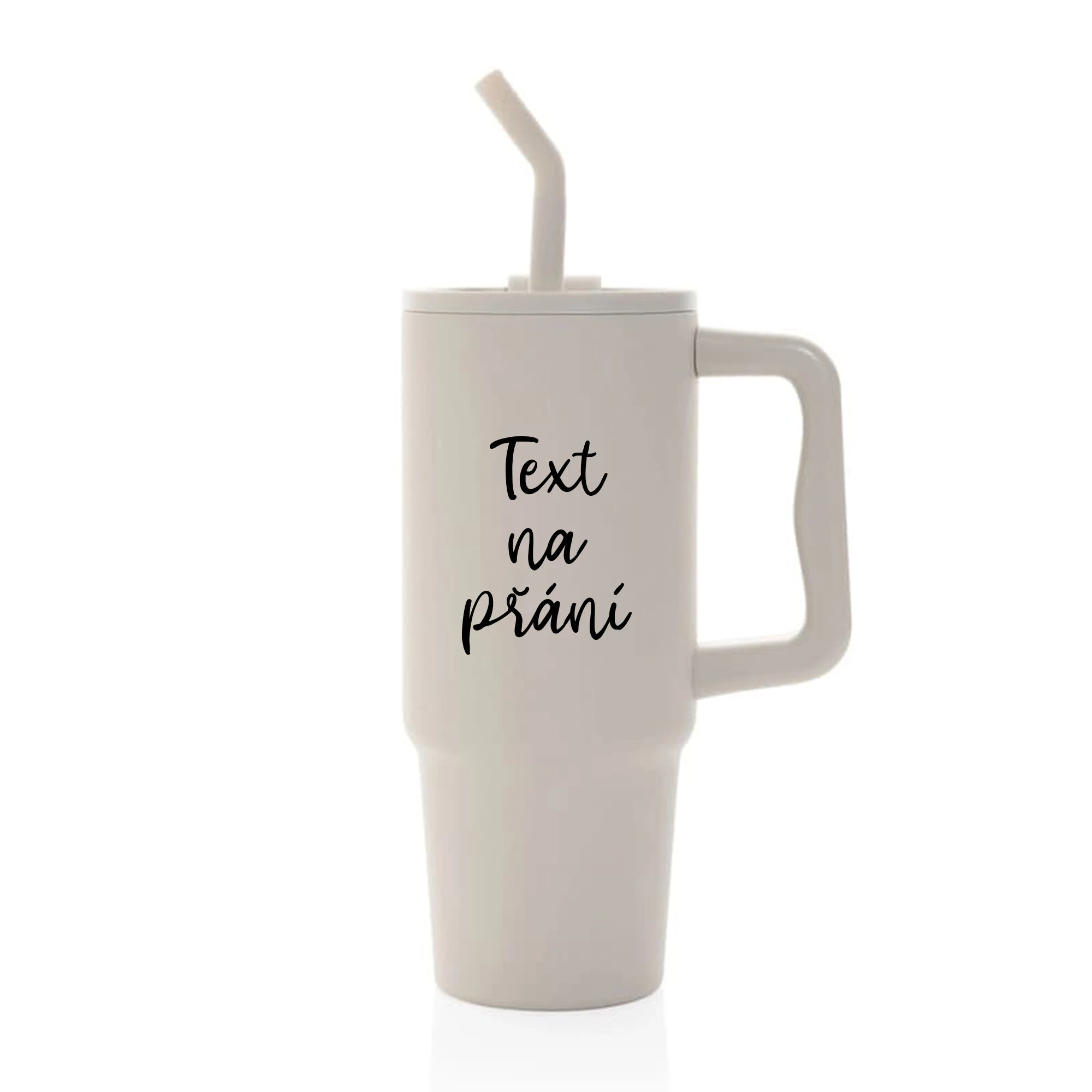 TEXT NA PŘÁNÍ - béžový cestovní termohrnek 900 ml