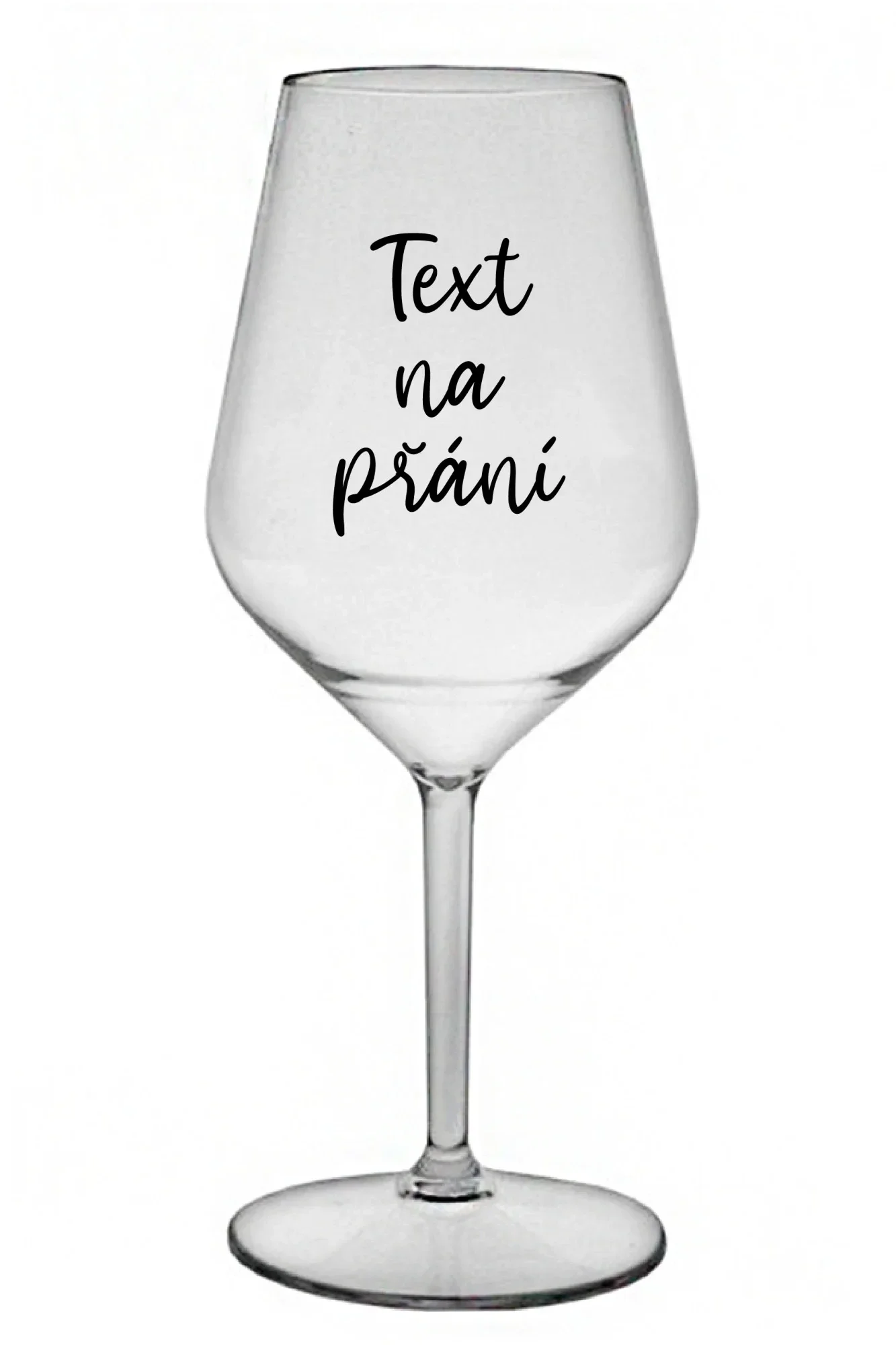 TEXT NA PŘÁNÍ - čirá nerozbitná sklenice na víno 470 ml