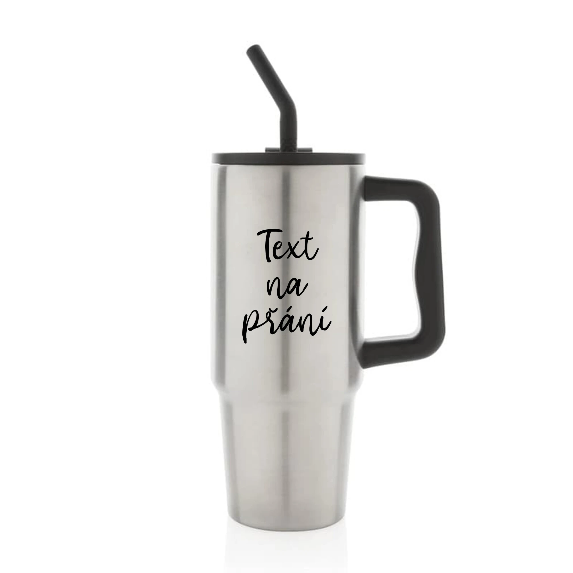 TEXT NA PŘÁNÍ - stříbrný cestovní termohrnek 900 ml
