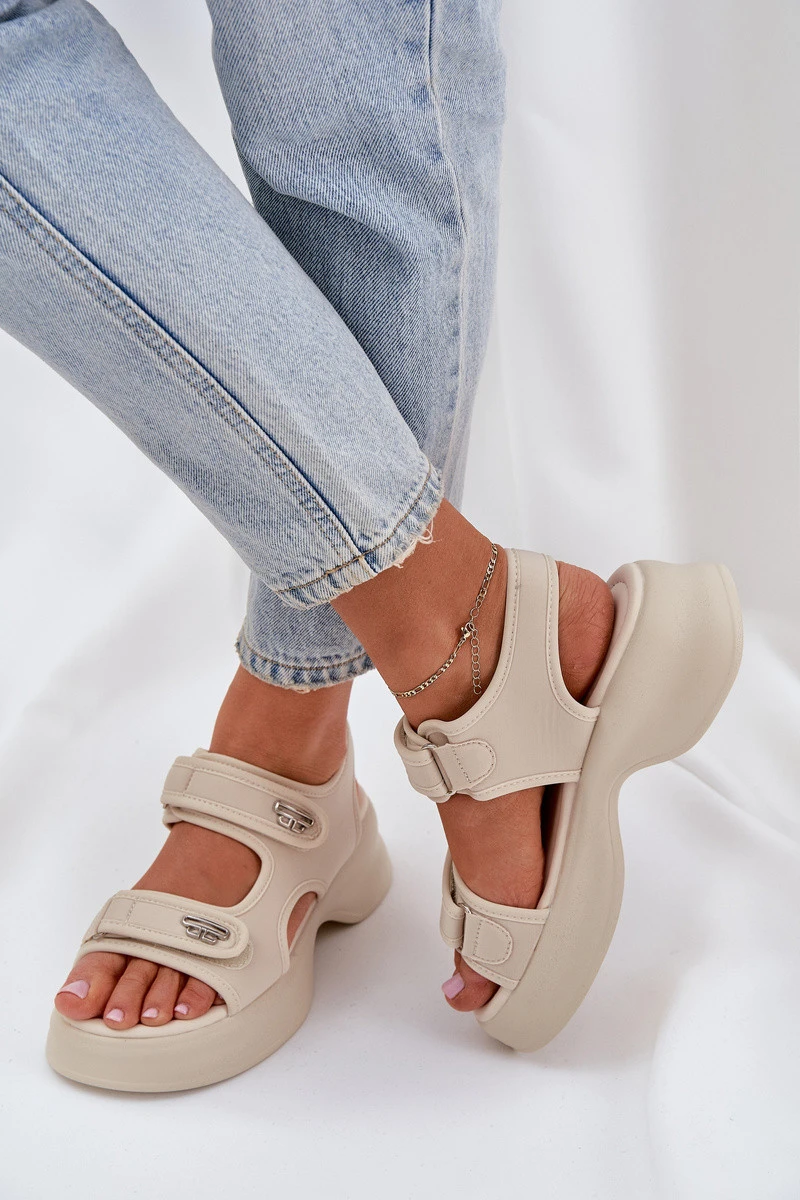 Textilní Lehká Sandály Na Platformě Světle Béžové Deniffia