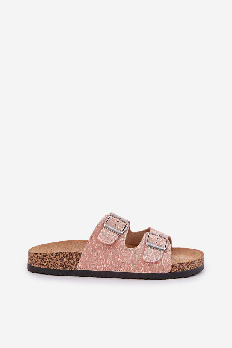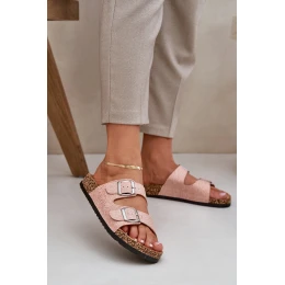 Textilové pantofle na korkové podrážce s přezkami růžové Atera