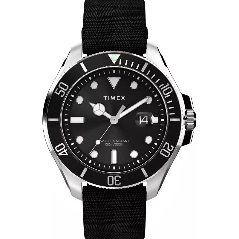 Pánský model TIMEX Harborside Coast, inspirovaný námořnickou estetikou, má elegantní a zároveň definitivní charakter. Robustní plášť o průměru 43 mm s nápadným vertikálním kartáčováním a sytě černý ciferník s jemným leskem upoutávají pozornost a dodávají celkovému vzhledu nádech třídy. Středobodem pozornosti je ukazatel data s vypouklou lupou - detail, který hodinkám dodává noblesu a odkazuje na to nejlepší ze světa hodinek. Hodinky mají řemínek #tide™ vyrobený z recyklovaného plastu vyloveného z oceánu, s rychloupínáním pro snadnou výměnu. Harborside Coast mají vodotěsnost do 100 metrů, otočný rámeček a robustníochrannou korunku, takže jsou dokonalým společníkem na vodě i na souši.
