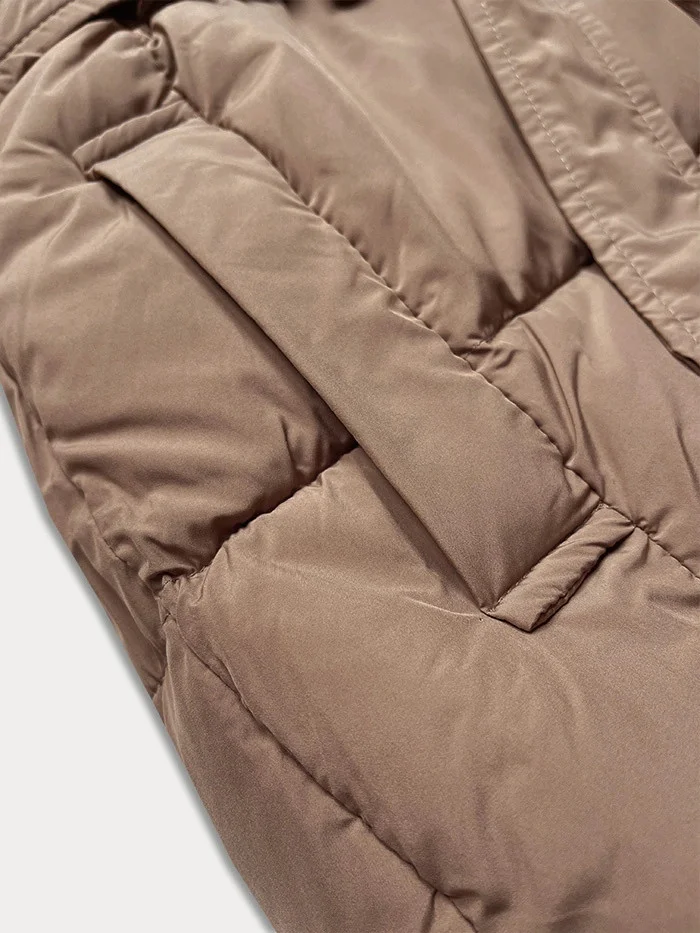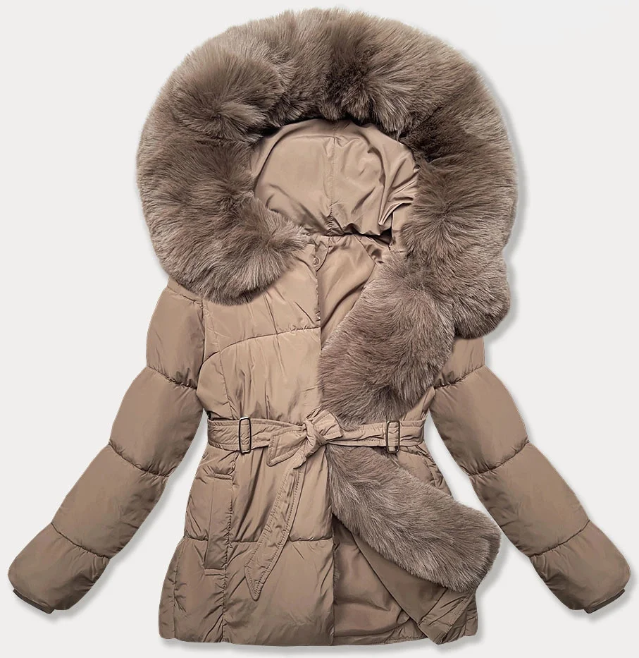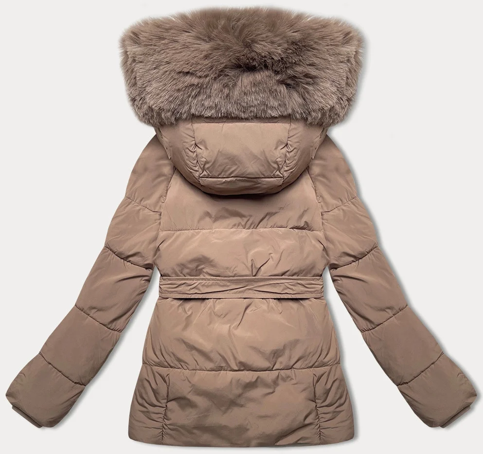 Tmavě béžová bunda pro přechodné období s páskem J Style (16M9183-84)