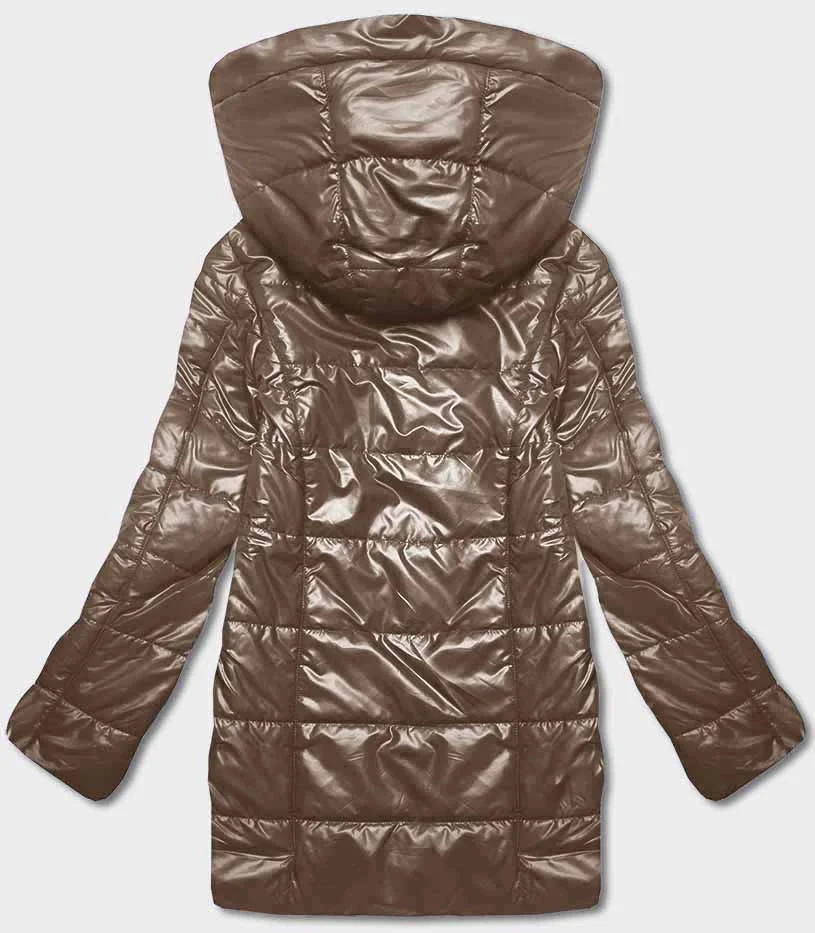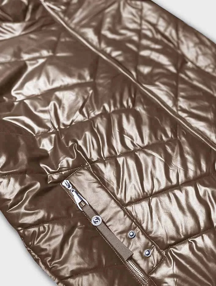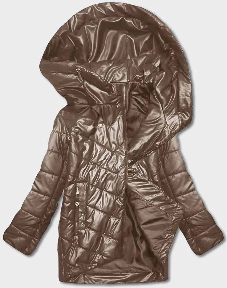 Tmavě béžová dámská bunda s asymetrickým zipem (B8087-46046)