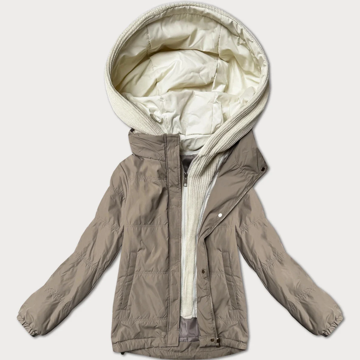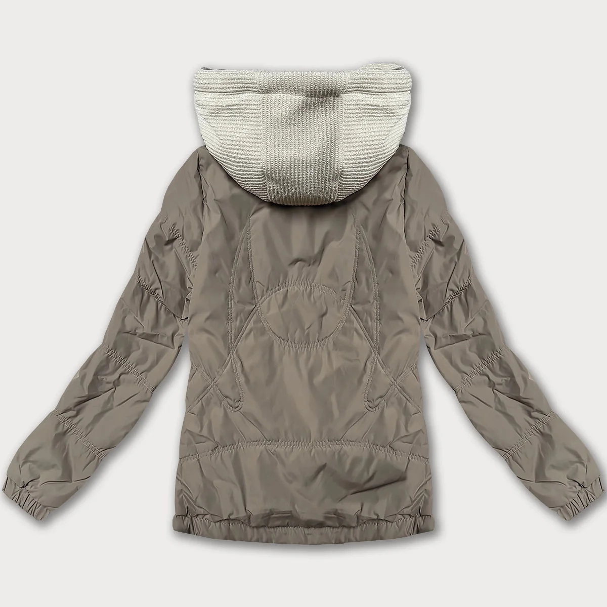 Tmavě béžová dámská bunda s ozdobnou kapucí Miss model 21043952 - Miss TiTi