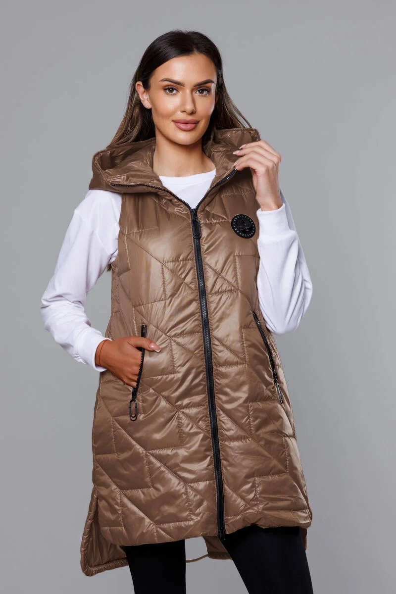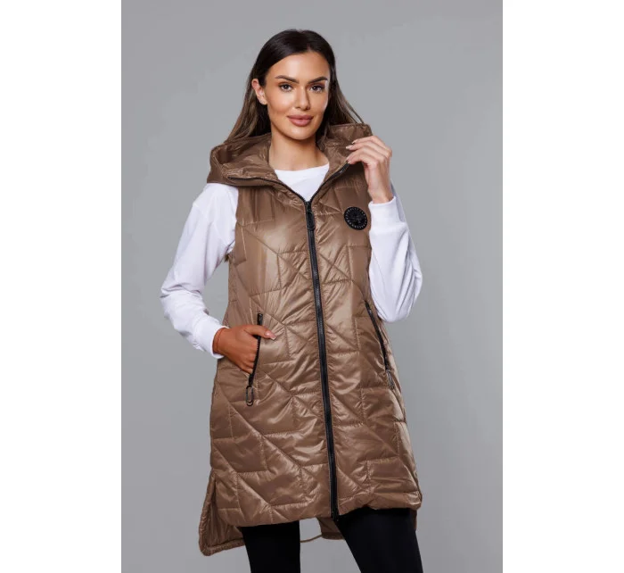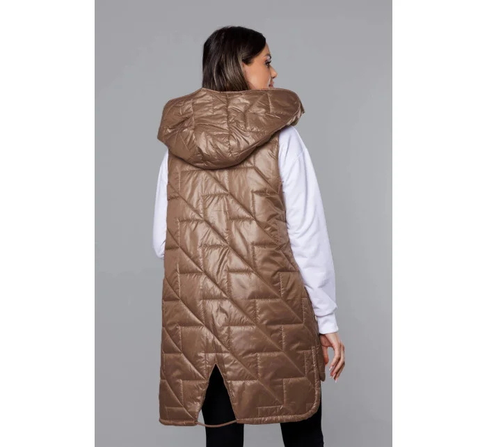 Tmavě béžová dámská prošívaná vesta (B8238-51)