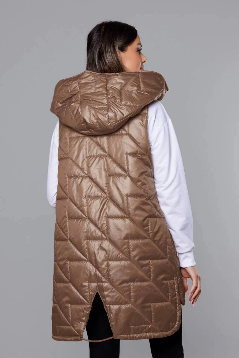 Tmavě béžová dámská prošívaná vesta model 19586914 - S'WEST