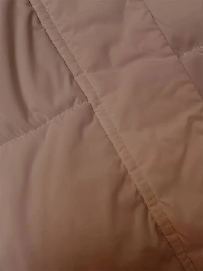 Bunda má volný střih, je zateplená syntetickou péřovou výplní, má dvě kapsy bez zapínání a zapíná se zipem. Model má stojáček a kapuci, kterou není možné odepnout. Na koncích rukávů jsou skryté stahovací lemy. Na spodním okraji modelu je stahovací lem v podobě gumy. Bunda má délku k bokům.