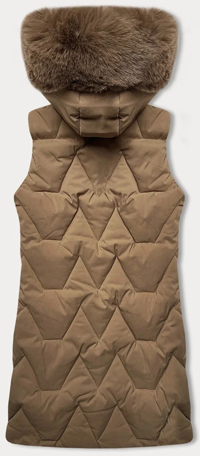 Tmavě béžová dámská vesta s kapucí kožešinou model 20698565 - J.STYLE